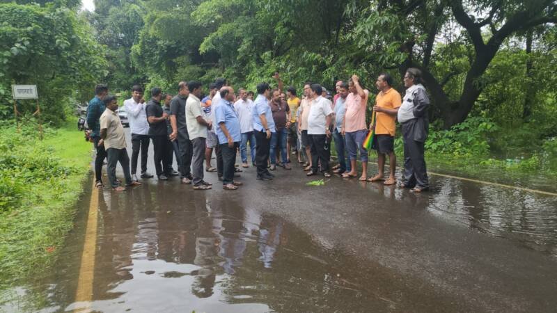 *🎴 कणकवली, दि.२२:* कणकवली तालुक्याला शुक्रवारी रात्री पावसाने जोरदार मुसंडी मारल्यामुळे शनिवारी दुपारपर्यंत अनेक रस्ते पाण्याखाली गेले वाहतूक विस्कळीत झाली आजरा कणकवली मार्गावर पाणी भरल्याने हा मार्ग पूर्ण बंद झाला. याबाबतची माहिती भाजपचे नेते आमदार नितेश राणे यांना कळताच वरवडे येथे फणस नगर येथे जावून पूरस्थितीची पाहणी केली. पावसाचा जोर वाढल्यास नजीकच्या वस्तीत पाणी घुसल्यात सावधानता म्हणून काय उपाययोजना करण्यात आल्या आहेत याची माहिती आमदार नितेश राणे यांनी प्रशासनाकडून घेतली. ग्रामस्थांशी चर्चा करून दिवस-रात्र सावध राहा,सतर्क रहा आणि पाणी वाढल्यास वस्तीत येत असल्यास सुरक्षित ठिकाणी जा अशा सूचना ही यावेळी आमदार नितेश राणे यांनी केल्या. शुक्रवारी रात्री सुरू झालेल्या मुसळधार पावसामुळे जानवली व गडनदीला पूर आल्याने लगतच्या भागांना पुराचा वेढा पडला. जानवलीनदीला पूर आल्यामुळे आचरा मार्गावर पाणी भरले.त्यामुळे वाहतूक ठप्प झाली.गडनदीवरील केटीबंधारे पाण्याखाली गेले असून मराठा मंडळ लगत असलेला केटी बंधाऱ्यावरून पाणी गेल्याने या मार्गावरून वाहतूक करणाऱ्या नागरिकांना सतर्कतेचा इशारा दिलेला आहे.