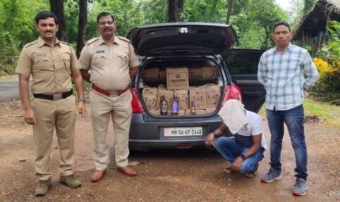 рдЧреЛрд╡реНрдпрд╛рддреВрди рд╕рд┐рдВрдзреБрджреБрд░реНрдЧрд╛рдд рдмреЗрдХрд╛рдпрджрд╛ рджрд╛рд░реБ рд╡рд╛рд╣рддреВрдХ рд╣реЛрдгрд╛рд░ рдЕрд╕рд▓реНрдпрд╛рдЪреА рдорд╛рд╣рд┐рддреА рдПрдХреНрд╕рд╛рдЗрдЬрдЪреНрдпрд╛ рдХреЛрд▓реНрд╣рд╛рдкреВрд░ рднрд░рд╛рд░реА рдкрдердХрд╛рд▓рд╛ рдкреНрд░рд╛рдкреНрдд рдЭрд╛рд▓реА рд╣реЛрддреА. рддреНрдпрд╛рдиреБрд╕рд╛рд░ рдмрд╛рдВрджрд╛ тАУ рдкрддреНрд░рд╛рджреЗрд╡реА рд░реЛрдбрд╡рд░ рдЖрд░реЛрд╕рдмрд╛рдЧ рдлрд╛рдЯреНрдпрд╛рд╡рд░ рдкрдердХрд╛рдиреЗ рд╕рд╛рдкрд│рд╛ рд░рдЪрд▓рд╛ рд╣реЛрддрд╛. рдЧреЛрд╡реНрдпрд╛рддреВрди рдпреЗрдгрд╛рд░реА рд╕реНрд╡рд┐рдлреНрдЯ рдХрд╛рд░ (рдПрдордПрдЪ режрем рдПрдПрдл реирекрекрео) рддрдкрд╛рд╕рдгреАрд╕рд╛рдареА рдерд╛рдВрдмрд╡рд┐рдгреНрдпрд╛рдд рдЖрд▓реА.рдпрд╛рд╡реЗрд│реА рдХрд╛рд░рдордзреНрдпреЗ рддрдмреНрдмрд▓ реорел рджрд╛рд░реБрдЪреЗ рдмреЙрдХреНрд╕ рдЖрдврд│реВрди рдЖрд▓реЗ. рд╡рд┐рджреЗрд╢реА рдмреНрд░рдБрдбрдЪреНрдпрд╛ ренрелреж рдорд┐рд▓реАрдЪреНрдпрд╛ репрежреж рдмрд╛рдЯрд▓реНрдпрд╛ рд╡ резреореж рдорд┐рд▓реАрдЪреНрдпрд╛ рекреореж рдмрд╛рдЯрд▓реНрдпрд╛ рдЬрдкреНрдд рдХрд░рдгреНрдпрд╛рдд рдЖрд▓реНрдпрд╛.рел рд▓рд╛рдЦ рейреи рд╣рдЬрд╛рд░ реорежреж рд░реБрдкрдпрд╛рдВрдЪреА рджрд╛рд░реБ рд╡ рем рд▓рд╛рдЦ реирел рд╣рдЬрд╛рд░рд╛рдВрдЪреА рдХрд╛рд░ рдЕрд╕рд╛ рдПрдХреВрдг резрез рд▓рд╛рдЦ релрен рд╣рдЬрд╛рд░ реорежреж рд░реБрдкрдпрд╛рдВрдЪрд╛ рдореБрджреНрджреЗрдорд╛рд▓ рдЬрдкреНрдд рдХрд░рдгреНрдпрд╛рдд рдЖрд▓рд╛.