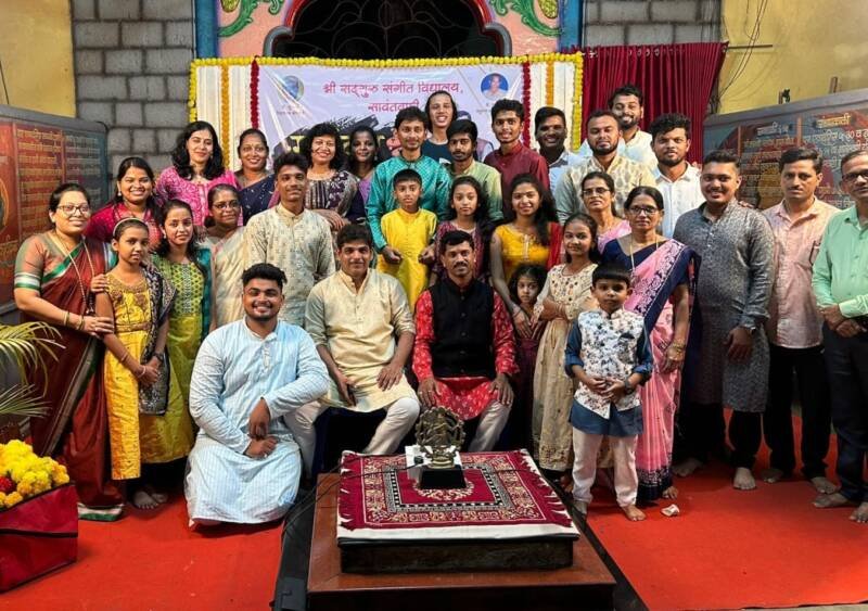 рд╕рд╛рдпрдВрдХрд╛рд│реА рдареАрдХ рек рд╡рд╛рдЬрддрд╛ рд╡реНрджрд┐рддреАрдп рд╕рддреНрд░рд╛рд╕ рдкреНрд░рд╛рд░рдВрдн рдЭрд╛рд▓рд╛ рдпрд╛рдкреНрд░рд╕рдВрдЧреА рд╕рд╛рд╡рдВрддрд╡рд╛рдбреА рд╕рдВрд╕реНрдерд╛рдирдЪреЗ рдпреБрд╡рд░рд╛рдЬ рд▓рдЦрдорд░рд╛рдЬреЗ рднреЛрдВрд╕рд▓реЗ рд╡ рдпреБрд╡рд░рд╛рдЬреНрдЮреА рд╢реНрд░рджреНрдзрд╛рд░рд╛рдЬреЗ рднреЛрд╕рд▓реЗ, рдкрдВ. рдЬрд┐рддреЗрдиреНрджреНрд░ рдЕрднрд┐рд╖реЗрдХреА рдмреБрд╡рд╛ рдпрд╛рдВрдЪреЗ рд╢рд┐рд╖реНрдп рдЧреБрд░реВрд╡рд░реНрдп рджрд╛рдореЛрджрд░ рдЙрд░реНрдл рднрд╛рдИ рд╢реЗрд╡рдбреЗ(рдзрд╛рд░рдЧрд│ – рдЧреЛрд╡рд╛) рдЬреНрдпреЗрд╖реНрда рд░рдВрдЧрдХрд░реНрдореА рд╡рд╕рдВрдд рдЙрд░реНрдл рднрд╛рдК рд╕рд╛рд│рдЧрд╛рдВрд╡рдХрд░, рд╢реНрд░реА рджрд┐рдкрдХ рджреЗрд╡рд╕реНрдерд│реА, рд╢реНрд░реА рдЕрдирдп рддреВрдпреЗрдХрд░ рдпрд╛рдВрдЪреА рд╡рд┐рд╢реЗрд╖ рдЙрдкрд╕реНрдерд┐рддреА рд▓рд╛рднрд▓реА. рд╕рджреНрдЧреБрд░реВ рд╕рдВрдЧреАрдд рд╡рд┐рджреНрдпрд╛рд▓рдпрд╛рдЪрд╛ рд╡рд┐рджрдпрд╛рд░реНрдереА рдХреБ. рдордВрдЧреЗрд╢ рд░рд╛рдордЪрдВрджреНрд░ рдореЗрд╕реНрддреНрд░реА рдЕрдЦрд┐рд▓ рднрд╛рд░рддреАрдп рдЧрд╛рдВрдзрд░реНрд╡ рдорд╣рд╛рд╡рд┐рджреНрдпрд╛рд▓рдпрд╛рдЪреНрдпрд╛ рд╡рд┐рд╢рд╛рд░рдж рдпрд╛ рдкрд░реАрдХреНрд╖реЗрдд рд╕рдВрдкреВрд░реНрдг рднрд╛рд░рддрд╛рдд рдкреНрд░рдердо рдХреНрд░рдорд╛рдВрдХ рдкреНрд░рд╛рдкреНрдд рдХреЗрд▓реНрдпрд╛ рдмрджреНрджрд▓ рдпреБрд╡рд░рд╛рдЬ рд▓рдЦрдорд░рд╛рдЬреЗ рд╡ рдЧреБрд░реВрд╡рд░реНрдп рднрд╛рдИ рд╢реЗрд╡рдбреЗ рдпрд╛рдВрдЪреНрдпрд╛ рд╣рд╕реНрддреЗ рдордВрдЧреЗрд╢рдЪрд╛ рдпрдереЛрдЪрд┐рдд рд╕рддреНрдХрд╛рд░ рдХрд░рдгреНрдпрд╛рдд рдЖрд▓рд╛ рд╡ рднрд╛рдК рд╕рд╛рд│рдЧрд╛рдВрд╡рдХрд░ рдпрд╛рдВрдЪреНрдпрд╛ рд╣рд╕реНрддреЗ рдордВрдЧреЗрд╢ рдЪреЗ рд╡рдбреАрд▓ рд╢реНрд░реА рд░рд╛рдордЪрдВрджреНрд░ рдореЗрд╕реНрддреНрд░реА рдпрд╛рдВрдЪрд╛ рд╕рдиреНрдорд╛рди рдХрд░рдгреНрдпрд╛рдд рдЖрд▓рд╛.