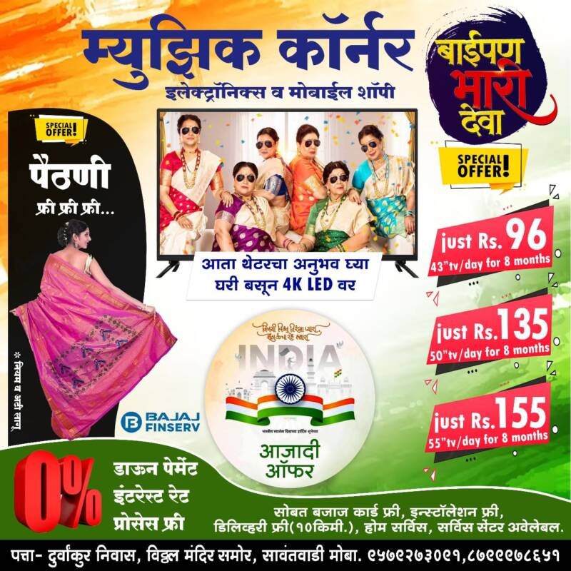 *_म्युझिक कॉर्नर इलेक्ट्रॉनिक्स,होम अप्लायन्सेस व मोबाईल शॉपी घेऊन आले आहेत 🇮🇳आजादी ऑफर 🇮🇳_*