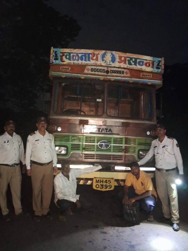 याबाबत अधिक माहिती अशी की पोलीस कॉन्स्टेबल प्रवीण सापळे पोलीस हेडकॉन्स्टेबल प्रशांत धुमाळे पोलीस नाईक अमोल धुरी हे रात्रो साडे अकराच्या दरम्याने सातोळी बावळट येथे वाहने तपासण्यासाठी उभे असताना त्यांच्या समोरून येणारा ट्रक त्यांनी संशय आल्याने थांबवला,त्यामध्ये अकरा गाई व सात बैल असे मिळून 18 गुरे आढळून आली, प्राण्यांची हाल करणे त्यांना दाटीवाटीने बांधणे या कलमाखाली इसाक अब्दुल नैसरीकर व क्लीनर तौसीफ इसाक नेसरीकर यांच्यावर गुन्हा दाखल करण्यात आला आहे.