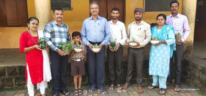 рдЖрдЬ рел рд╕рдкреНрдЯреЗрдВрдмрд░ рдореНрд╣рдгрдЬреЗрдЪ рд╢рд┐рдХреНрд╖рдХ рджрд┐рди рдпрд╛ рджрд┐рдирд╛рдЪреЗ рдФрдЪрд┐рддреНрдп рд╕рд╛рдзреВрди рдХрдмреАрд░ рдиреЗ рдЖрдкрд▓реНрдпрд╛ рд╢рд┐рдХреНрд╖рдХрд╛рдВрдирд╛ рдПрдХ рд╡реЗрдЧрд│реА рдЕрд╢реА рднреЗрдЯ рджрд┐рд▓реА. рдХрдмреАрд░ рдиреЗ рд╢рд╛рд│реЗрддреАрд▓ рдкреНрд░рддреНрдпреЗрдХ рд╢рд┐рдХреНрд╖рдХрд╛рд▓рд╛ рдПрдХ рдПрдХ рд░реЛрдкрдЯреЗ рджрд┐рд▓реЗ рд╡рд┐рд╢реЗрд╖ рдореНрд╣рдгрдЬреЗ рдпрд╛ рд░реЛрдкрд╛рдВрдирд╛ рд▓рд╛рд╡рдгреНрдпрд╛рд╕рд╛рдареА рддреНрдпрд╛рдиреЗ ” рдЯрд╛рдХрд╛рдК рдкрд╛рд╕реВрди рдЯрд┐рдХрд╛рдК” рд╣реНрдпрд╛ рд╕рдВрдХрд▓реНрдкрдирд╛ рд╕рд╛рдХрд╛рд░рдд рддреНрдпрд╛рдиреЗ рдкреНрд▓рд╛рд╕реНрдЯрд┐рдХ рдЪреЗ рдбрдмреЗ, рдХрд╛рдЪреЗрдЪреНрдпрд╛ рдмрд░рдгреНрдпрд╛, рд╢рд┐рдд рдкреЗрдпрд╛рдЪреА рдмреЙрдЯрд▓рд╕ рдЕрд╢рд╛ рдЧреЛрд╖реНрдЯреАрдВрдЪрд╛ рд╡рд╛рдкрд░ рдХреЗрд▓рд╛.
