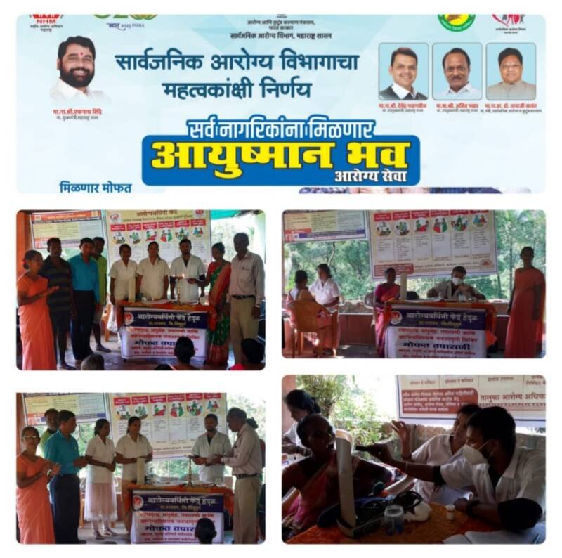 *🎴 सिंधुदुर्ग, दि.०६:* केंद्र शासनाची महत्वपूर्ण मोहीम ‘आयुष्यमान भव’ निमित्ताने आरोग्यवर्धिनी केंद्र हेदुळ मार्फत गाव ओवळीये जंगमवाडी येथे रक्तदाब,मधुमेह तपासणी करण्यात आली त्याचप्रमाणे इतरही रक्त तपासण्या करण्यात आले आयुष्यमान भव कार्यक्रमाचे ह्यावेळी उदघाटन ओवळीये गावचे सरपंच. रंजना पडवळ ह्यांच्या हस्ते करण्यात आले गावचे पोलिस पाटील .मारुति जंगम उपस्थित होते. एकूण 50 नागरिकांनी शिबिराचा लाभ घेतला ह्यावेळी प्रा.आ.केंद्र NCD स्टाफ परब सिस्टर ,महालॅब कर्मचारी सुतार समुदाय आरोग्य अधिकारी,आरोग्य सेवक,आशा स्वयंसेविका ह्यांनी कामकाज केले. ओवळा गावातील नागरिकांनी मोठ्या संख्येने उपस्थित राहून लाभ घेतला.आरोग्यवर्धिनी केंद्राचे कर्मचारी देत असलेल्या आरोग्य सेवाबंद्दल समाधान व्यक्त केले.