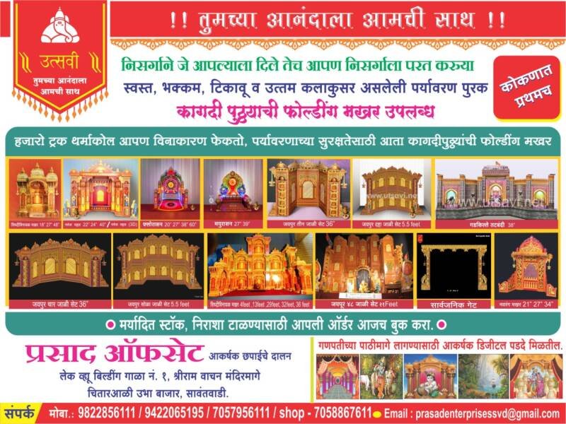 _🎊 *गणेशचतुर्थी* जवळ आली कसली चिंता करताय *सजावटची*??? चिंता करु नका,सावंतवाडीतील *प्रसाद ऑफसेट* घेऊन आले आहेत खास आपल्यासाठी *🛕कागदी पुठ्ठयाचे फोल्डिंग मकर🛕*.._