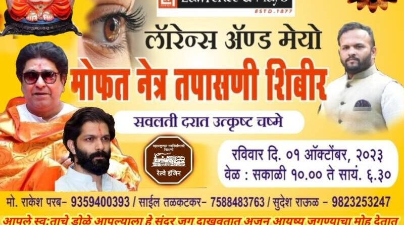 рдбреЛрд│реЗ рдЖрдкрд▓реНрдпрд╛ рдЬреАрд╡рдирд╛рдЪрд╛ рдорд╣рддреНрддреНрд╡рд╛рдЪрд╛ рднрд╛рдЧ рдЖрд╣реЗ рддреНрдпрд╛рдВрдЪреА рдХрд╛рд│рдЬреА рдШреЗрдгрдВ рд╣реЗ рдЖрдкрд▓реНрдпрд╛рдЪ рд╣рд╛рддрд╛рдд рдЖрд╣реЗ рддреНрдпрд╛рд╕рд╛рдареА рд╣реЗ рд╢рд┐рдмрд┐рд░ рдЖрдпреЛрдЬрд┐рдд рдХреЗрд▓рдВ рддрд░реА рд▓рд╣рд╛рдирд╛ рдкрд╛рд╕реБрди рдореЛрдареНрдпрд╛рдиреА рдЖрдкрд▓реЗ рдиреЗрддреНрд░ рддрдкрд╛рд╕реБрди рдШреНрдпрд╛рд╡реЗ рд╣реЗ рд╢рд┐рдмрд┐рд░ рдореЛрдлрдд рдЕрд╕рд▓реНрдпрд╛рдиреЗ рд╕рд░реНрд╡ рд▓реЛрдХрд╛рдВрдиреА рдореЛрдареНрдпрд╛ рд╕рдВрдЦреНрдпреЗрдиреЗ рдЙрдкрд╕реНрдерд┐рдд рд░рд╣рд╛рд╡реЗ.