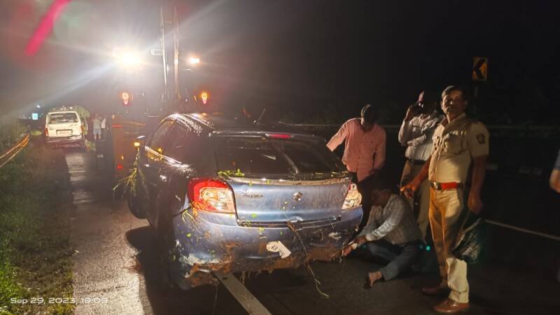 рдпрд╛ рдЕрдкрдШрд╛рддрд╛рдд рд╕реБрджреИрд╡рд╛рдиреЗ рдХреЛрдгрддреАрд╣реА рдЬреАрд╡рд┐рдд рд╣рд╛рдиреА рдЭрд╛рд▓реА рдирд╛рд╣реА. рдиреЗрдордХрд╛ рдЕрдкрдШрд╛рдд рдХрд╕рд╛ рдЭрд╛рд▓рд╛? рд╣реЗ рд╕рдордЬреВ рд╢рдХрд▓реЗ рдирд╛рд╣реА. рдкрдг рдЧрд╛рдбреАрдЪреЗ рдореЛрдареЗ рдиреБрдХрд╕рд╛рди рдЭрд╛рд▓реЗ рд╣реЛрддреЗ. рдЧрд╛рдбреАрдЪреНрдпрд╛ рджреЛрдиреНрд╣реА рдПрдЕрд░ рдмреЕрдЧ рджреЗрдЦреАрд▓ рдУрдкрди рдЭрд╛рд▓реНрдпрд╛ рд╣реЛрддреНрдпрд╛.рд╕рд╛рдпрдВрдХрд╛рд│реА рдЖрда рд╡рд╛рдЬреЗрдкрд░реНрдпрдВрдд рдкреЛрд▓рд┐рд╕рд╛рдВрдирд╛ рд╣реА рдЧрд╛рдбреА рдиреЗрдордХреА рдХреЛрдгрд╛рдЪреА? рд╣реЗрдЪ рд╕рдордЬреЗрдирд╛ рдХрд╛рд░рдг рдЧрд╛рдбреА рдЬрд╡рд│ рдХреЛрдгреАрд╣реА рдЖрдврд│реВрди рдЖрд▓реЗ рдирд╛рд╣реА рдХрд┐рдВрд╡рд╛ рдХреЛрдгреА рдЬрдЦрдореА рдЕрд╡рд╕реНрдереЗрдд рджрд┐рд╕рд▓реЗ рдирд╛рд╣реА.рдХрд╛рд░ рдЪреНрдпрд╛ рдирдВрдмрд░ рдкреНрд▓реЗрдЯ рд╣реА рдЪрд╛рд▓рдХрд╛рдиреЗ рдХрд╛рдвреВрди рдЯрд╛рдХрд▓реА рдЖрд╣реЗ.