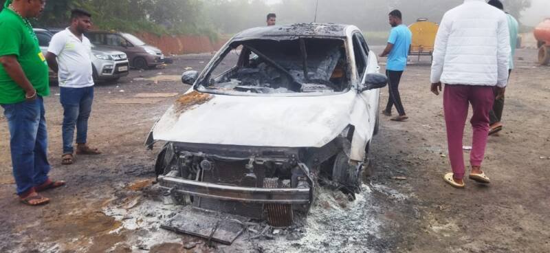 *🎴सावंतवाडी , दि.१९:* सावंतवाडी बाहेरचा वाडा येथील शेहबाज बागवान हे आपल्या मालकीच्या एम ०७-२४४७ या हुंडाई गाडीने नातेवाईकांना सोडण्यासाठी सावंतवाडी मळगाव रेल्वे स्टेशनवर गेले ,गाडी पार्क करून ते रेल्वे स्थानकावर जात असताना त्यांच्या गाडीमध्ये शॉर्टसर्किट होऊन गाडीने पेट घेतला, सुदैवाने कोणतीही जीवितहानी झाली नाही मात्र संपूर्ण गाडी आगीच्या भक्ष्यस्थानी पडली.