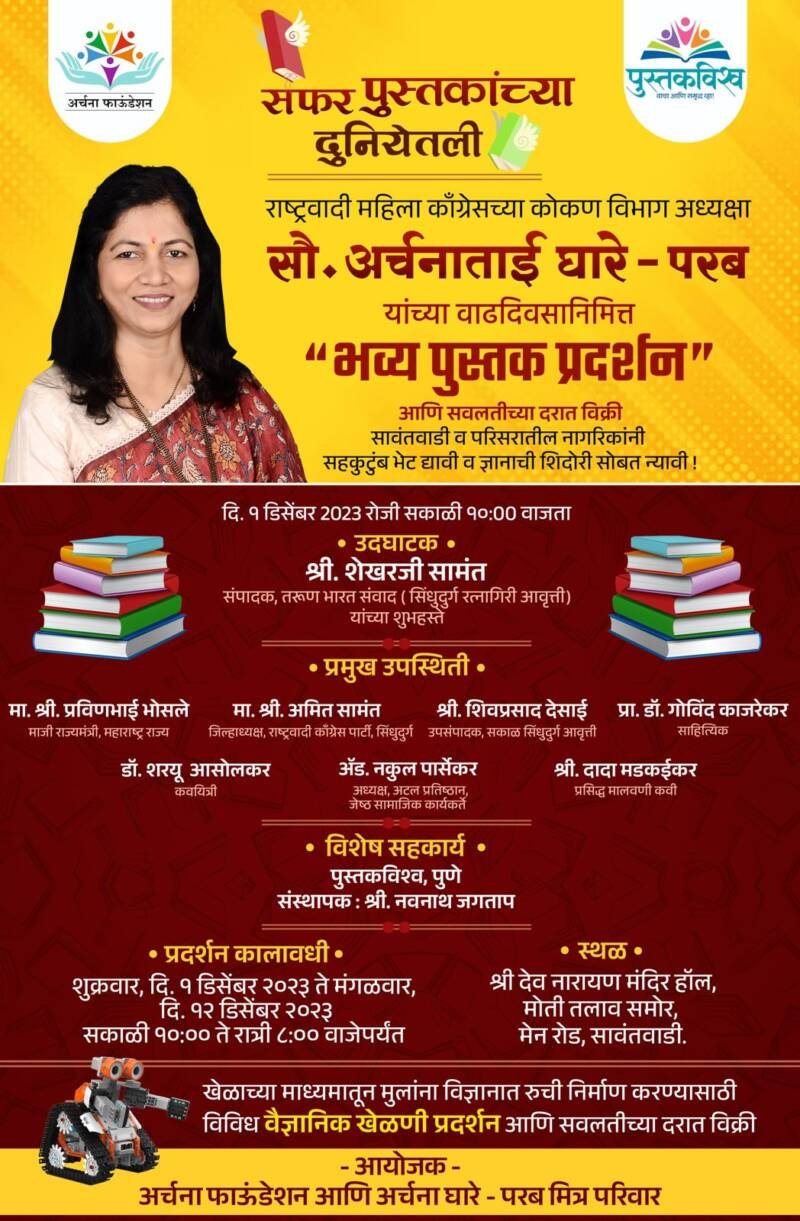 рдЕрд░реНрдЪрдирд╛ рдлрд╛рдКрдВрдбреЗрд╢рдирдЪреНрдпрд╛ рд╡рддреАрдиреЗ рд╡ рдкреБрд╕реНрддрдХ рд╡рд┐рд╢реНрд╡рдЪреНрдпрд╛ рд╕рд╣рдХрд╛рд░реНрдпрд╛рдиреЗ рднрд╡реНрдп рдкреБрд╕реНрддрдХ рдЖрдгрд┐ рд╡реИрдЬреНрдЮрд╛рдирд┐рдХ рдЦреЗрд│рдгреНрдпрд╛рдВрдЪреЗ рдкреНрд░рджрд░реНрд╢рди рдЖрдпреЛрдЬрд┐рдд рдХрд░рдгреНрдпрд╛рдд рдЖрд▓реЗ рдЖрд╣реЗ.