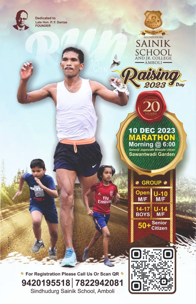 ЁЯО┤рд╕рд╛рд╡рдВрддрд╡рд╛рдбреА, рджрд┐-режрел:– рд╕рд┐рдВрдзреБрджреБрд░реНрдЧ рдбрд┐рд╕реНрдЯреНрд░рд┐рдХреНрдЯ рдПрдХреНрд╕ рд╕рд░реНрд╡реНрд╣рд┐рд╕рдорди рдЕрд╕реЛрд╢рд┐рдПрд╢рди рд╕рдВрдЪрд▓рд┐рдд рд╕рд┐рдВрдзреБрджреБрд░реНрдЧ рд╕реИрдирд┐рдХ рд╕реНрдХреВрд▓, рдЖрдВрдмреЛрд▓реА рдпрдВрджрд╛ рдЖрдкрд▓рд╛ реиреж рд╡рд╛ рд╡рд░реНрдзрд╛рдкрди рджрд┐рди рд╕рд╛рдЬрд░рд╛ рдХрд░рдд рдЖрд╣реЗ. рдпрд╛ рдирд┐рдорд┐рддреНрддрд╛рдиреЗ рд░рд╡рд┐рд╡рд╛рд░ рджрд┐.резреж рдбрд┐рд╕реЗрдВрдмрд░ реирежреирей рд░реЛрдЬреА рднрд╡реНрдп рдЬрд┐рд▓реНрд╣рд╛рд╕реНрддрд░реАрдп рдореЕрд░реЗрдереЙрди рд╕реНрдкрд░реНрдзрд╛ рд╕рд╛рд╡рдВрддрд╡рд╛рдбреА рдпреЗрдереЗ рдЖрдпреЛрдЬрд┐рдд рдХрд░рдгреНрдпрд╛рдд рдЖрд▓реА рдЖрд╣реЗ. рдпрд╛ рд╕реНрдкрд░реНрдзреЗрдордзреНрдпреЗ рдкреБрд░реВрд╖ (рдЦреБрд▓рд╛ рдЧрдЯ) реирез рдХрд┐рдореА, рдореБрд▓реЗ (рд╡рдп резрек рддреЗ резрен рдЧрдЯ) резрез рдХрд┐рдореА, рдореБрд▓реЗ (резрек рд╡рд░реНрд╖рд╛рдЦрд╛рд▓реАрд▓ рдЧрдЯ)- рдореЛрддреА рддрд▓рд╛рдмрд╛рд╕ рддреАрди рдлреЗ-рдпрд╛, рдореБрд▓реА (рдЦреБрд▓рд╛ рдЧрдЯ) резрез рдХрд┐рдореА, рдореБрд▓реА (резрек рд╡рд░реНрд╖рд╛рдЦрд╛рд▓реАрд▓ рдЧрдЯ) рдореЛрддреА рддрд▓рд╛рд╡рд╛рд╕ рддреАрди рдлреЗ-рдпрд╛, рдореБрд▓реЗ рдореБрд▓реА (резреж рд╡рд░реНрд╖рд╛рдЦрд╛рд▓реАрд▓ рдЧрдЯ) рдореЛрддреА рддрд▓рд╛рд╡рд╛рд╕ рдПрдХ рдлреЗрд░реА, рдЬреЗрд╖реНрда рдирд╛рдЧрд░реАрдХ (релреж рд╡рд░реНрд╖рд╛рд╡рд░реАрд▓)- рдореЛрддреА рддрд▓рд╛рд╡рд╛рд╕ рджреЛрди рдлреЗ-рдпрд╛ рдЕрд╢рд╛ рдкреНрд░рдХрд╛рд░реЗ рд╕рд╣рднрд╛рдЧреА рд╣реЛрдК рд╢рдХрддреАрд▓. рдореЕрд░реЗрдереЙрди рд╕реНрдкрд░реНрдзреЗрдЪреА рдЬрдЧреНрдЧрдиреНрдирд╛рдерд░рд╛рд╡ рднреЛрд╕рд▓реЗ рдЙрджрдпрд╛рди рдпреЗрдереВрди рдкрд╣рд╛рдЯреЗ режрем.режреж рд╡рд╛рдЬрддрд╛ рд╕реБрд░реВрд╡рд╛рдд рд╣реЛрдИрд▓. рдореЕрд░реЗрдереЙрди рд╕реНрдкрд░реНрдзрд╛ рд╡рд┐рдЬреЗрддреНрдпрд╛рдВрдирд╛ рдЖрдХрд░реНрд╖рдХ рдкрд╛рд░рд┐рддреЛрд╖рд┐рдХреЗ рдареЗрд╡рдгреНрдпрд╛рдд рдЖрд▓реЗрд▓реА рдЖрд╣реЗрдд. рд╕рджрд░ рд╕реНрдкрд░реНрдзрд╛ рд╕рд┐рдВрдзреБрджреБрд░реНрдЧ рдбрд┐рд╕реНрдЯреНрд░рд┐рдХреНрдЯ рдПрдХреНрд╕ рд╕рд░реНрд╡реНрд╣рд┐рд╕рдорди рдЕрд╕реЛрд╢рд┐рдПрд╢рдирдЪреЗ рджрд┐рд╡рдВрдЧрдд рдЕрдзреНрдпрдХреНрд╖ рдкреА.рдПрдл. рдбреЙрдиреНрдЯрд╕ рдпрд╛рдВрдЪреНрдпрд╛ рд╕реНрдореГрддреАрд╕ рдЕрд░реНрдкрдг рдХрд░рдгреНрдпрд╛рдд рдпреЗрдд рдЖрд╣реЗ.