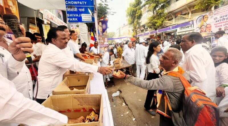 ЁЯО┤рдореБрдВрдмрдИ, рджрд┐-режрео:- рднрд╛рд░рддрд░рддреНрди рдк. рдкреВ. рдбреЙ рдмрд╛рдмрд╛рд╕рд╛рд╣реЗрдм рдЖрдВрдмреЗрдбрдХрд░ рдпрд╛рдВрдЪреНрдпрд╛ рдорд╣рд╛рдкрд░рд┐рдирд┐рд░реНрд╡рд╛рдг рджрд┐рдирд╛ рдирд┐рдорд┐рддреНрдд рджрд┐ рем рдбрд┐рд╕реЗрдВрдмрд░ реирежреирей рд░реЛрдЬреА рдЪреИрддреНрдпрд╛рднреВрдореА рджрд╛рджрд░ рдпреЗрдереЗ рдк. рдкреВ. рдбреЙ. рдмрд╛рдмрд╛рд╕рд╛рд╣реЗрдм рдЖрдВрдмреЗрдбрдХрд░ рдпрд╛рдВрдЪреЗ рджрд░реНрд╢рди рдШреЗрддрд▓реЗ. рез) рджрд╛рджрд░ рдЬреБрдирд╛ рдлреБрд▓ рдмрд╛рдЬрд╛рд░ рд╡ рджрд╛рджрд░ рдХрдЯ рдлреНрд▓реЙрд╡рд░ рдЕрд╕реЛрд╕рд┐рдПрд╢рди рдпрд╛рдВрдЪреНрдпрд╛ рд╡рддреАрдиреЗ рднреАрдо рд╕реИрдирд┐рдХрд╛рдВрдирд╛ рд╡рдбрд╛рдкрд╛рд╡ рд╡рд╛рдЯрдк рдХрд╛рд░реНрдпрдХреНрд░рдорд╛рд╕ рд╕рд╣рднрд╛рдЧ рджрд░реНрд╢рд╡рд▓рд╛. рд╡рд┐рд╢реЗрд╖ рдЖрднрд╛рд░ рд╕реЛрдирд╛рди рд╕реЗрда, рджреБрд░рд╛рдлреЗ рд╕реЗрда рд╡ рдЕрд╢реЛрдХ рдорд┐рд╢реНрд░рд╛рдо. реи) рдЖрдзрд╛рд░рд╕реНрдердВрдн рдПрдХрддрд╛ рд╕рд╛рдорд╛рдЬрд┐рдХ рд╕рдВрд╕реНрдерд╛ рд╡ рдмреА. рдПрдо. рдПрд╕ рдЖрдгрд┐ рд░рд╛рдирдбреЗ рд░реЛрдб рдлреЗрд░реАрд╡рд╛рд▓реЗ рдпрд╛рдВрдЪреНрдпрд╛ рдорд╛рдзреНрдпрдорд╛рддреВрди рднреАрдо рдЕрдиреБрдпрд╛рдпрд╛рдВрдирд╛ рдкрд╛рдгреА рд╡ рдмрд┐рд╕реНрдХреАрдЯ рд╡рд╛рдЯрдк рдХрд╛рд░реНрдпрдХреНрд░рдорд╛рдВрд╕ рдЙрдкрд╕реНрдерд┐рддреА рд▓рд╛рд╡рд▓реА. рд╡рд┐рд╢реЗрд╖ рдЖрднрд╛рд░ рд╕рддрд┐рд╢ рдереЛрд░рд╛рдд, рд╢рд┐рд╡рд╛рдЬреА рд╕реБрд│реЗ. рей) рднрд╛рдЬрдкрд╛ рд╣реЙрд╡рдХрд░реНрд╕ рдпреБрдирд┐рдЯ рдЕрдзреНрдпрдХреНрд╖ рдмрд╛рдмреБрднрд╛рдИ рднрд╡рд╛рдирдЬреА рдпрд╛рдВрдЪреНрдпрд╛ рд╡рддреАрдиреЗ рдмрд┐рд╕рд▓реЗрд░реА рдкрд╛рдгреА рд╡рд╛рдЯрдк рдЪреИрддреНрдпрд╛рднреВрдореА рдпреЗрдереЗ рдХрд╛рд░реНрдпрдХреНрд░рдорд╛рдВрд╕ рдЙрдкрд╕реНрдерд┐рддреА рд▓рд╛рд╡рд▓реА. рек) рдПрдо. рдЬрд╛рд╡рд│реЗ рдорд╛рд░реНрдЧ рджрд╛рджрд░ рдореБ реирео рдлреЗрд░реАрд╡рд╛рд▓реЗ рдлреБрд▓ рдорд╛рд░реНрдХреЗрдЯ рд╡ рдЖрд╕рдкрд╛рд╕ рджреБрдХрд╛рдирджрд╛рд░ рдпрд╛рдВрдЪреНрдпрд╛ рд╡рддреАрдиреЗ рднреАрдо рдЕрдиреБреНрдпрд╛рдВрд╕рд╛рдареА рдкрд╛рдгреА рд╡ рдмрд┐рд╕реНрдХреАрдЯ рд╡рд╛рдЯрдк рдХрд╛рд░реНрдпрдХреНрд░рдорд╛рдВрд╕ рдЙрдкрд╕реНрдерд┐рддреА рджрд░реНрд╢рд╡рд▓реА. рдорд╛. рдЖрдорджрд╛рд░ рд╢реНрд░реА. рдХрд╛рд▓рд┐рджрд╛рд╕ рдХреЛрд│рдВрдмрдХрд░, рд╢реНрд░реА рдЬрд┐рддреЗрдВрджреНрд░ рдХрд╛рдВрдмрд│реЗ рд╕рд╣ рдЕрдиреЗрдХ рдкрджрд╛рдзрд┐рдХрд╛рд░реА рдЙрдкрд╕реНрдерд┐рдд рд╣реЛрддреЗ.