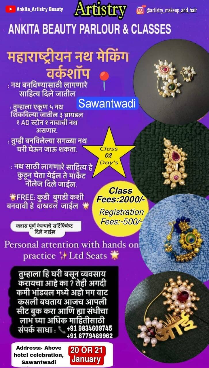 _⚜️Ankita Beauty Parlour And Classes घेऊन आले आहेत आपल्या सावंतवाडीत नथ बनवण्याचे वर्कशॉप_