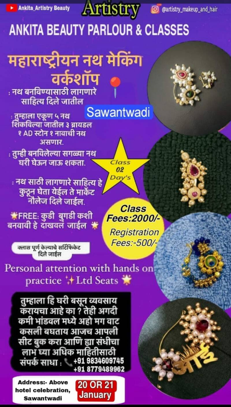 *⚜️Ankita Beauty Parlour And Classes घेऊन आले आहेत आपल्या सावंतवाडीत नथ बनवण्याचे वर्कशॉप*