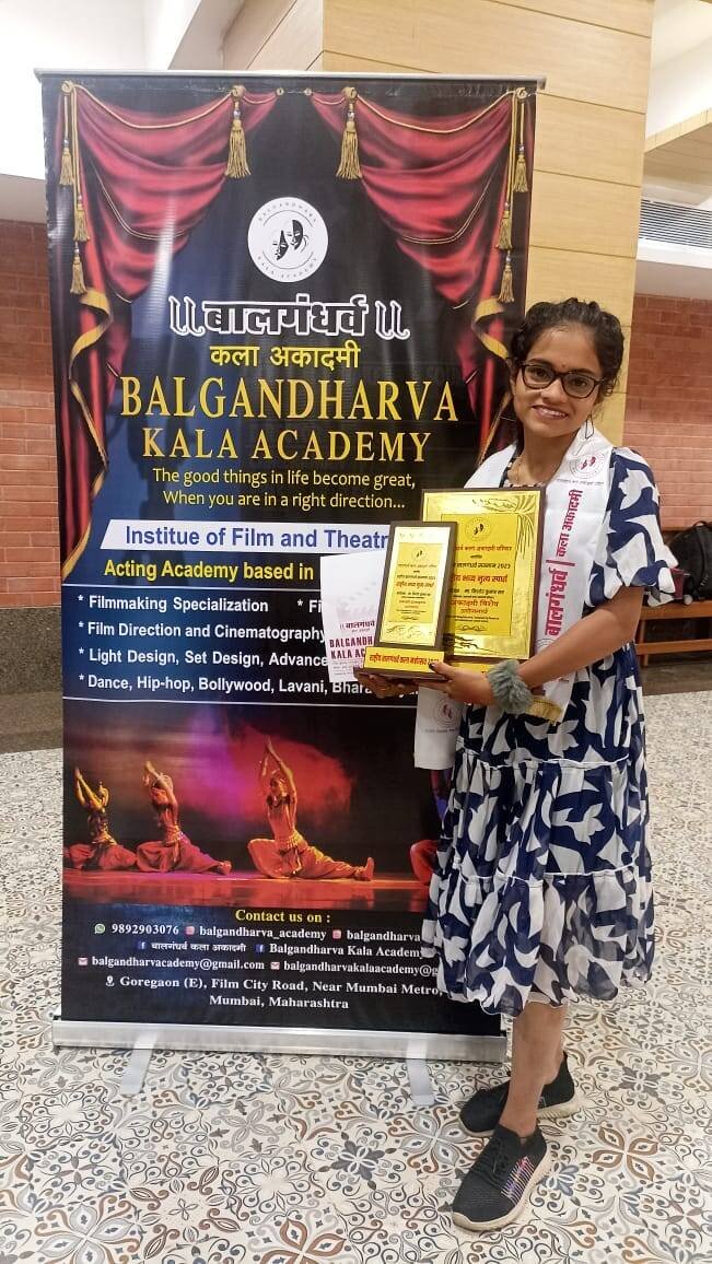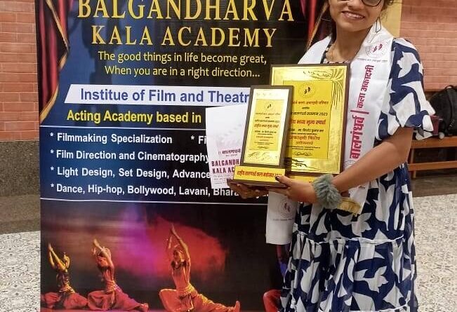 *🎴 सावंतवाडी, दि.३०:* माजगांव, ता. सावंतवाडी येथील कु. भक्ती प्र. दळवी हिने क्रिडा व युवक सेवा संचालनालय, महाराष्ट्र राज्य, पुणे व कृषी आयुक्तालय, महाराष्ट्र राज्य, पुणे यांचे संयुक्त विद्यमाने जिल्हा क्रिडा अधिकारी कार्यालय, सिंधुदुर्ग आयोजित जिल्हास्तरीय यूवा महोत्सव २०२३, वैयक्तिक लोकनृत्य तृतीय क्रमांक, तसेच बालगंधर्व कला अकादमी परिवार आयोजित राष्ट्रीय बालगंधर्व सन्मान २०२३, राष्ट्रीय भव्य नृत्य स्पर्धा (लावणी) मुंबई येथे आयोजित करण्यात आली होती. त्यास्पर्धेत अकादमी विशेष पुरस्काराने सन्मानित करण्यात आले. तिचे या यशाबद्दल सर्व स्तरावरुन अभिनंदन करण्यात येत आहे.