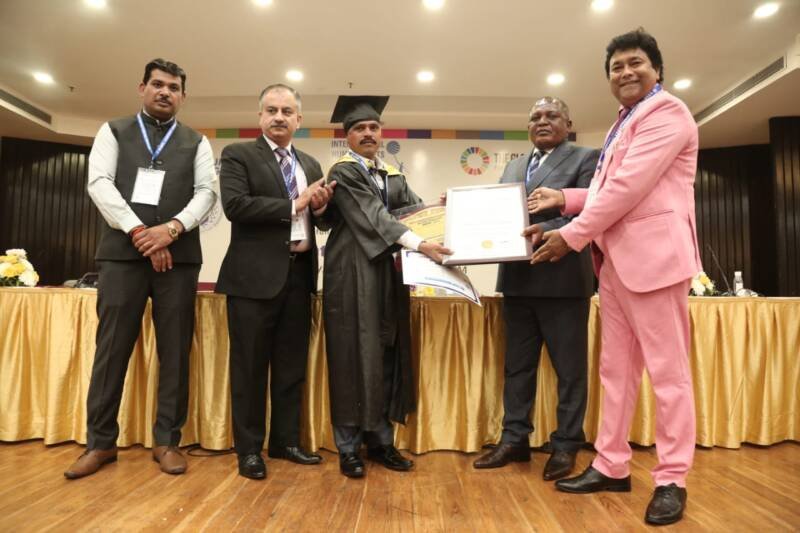 *🎴सावंतवाडी,दि-३०:-* मालवण कुंभारमाठचे सुपुत्र, आदर्श शेतकरी उत्तम सूर्यकांत फोंडेकर यांना मागील तीन वर्षातील हापूस आंब्यांचे प्रथम उत्पादन घेण्याच्या कार्याबद्दल आणि संशोधनबद्दल नोव्हेंबर महिन्यात जाहीर झालेली कृषी क्षेत्रातील मानद डॉक्टरेट 28 डिसेंबरला दिल्लीत ‘इंडिया इंटरनॅशनल सेंटर ‘येथे कुलगुरू, कुलसचिव, कृषी उच्चायुक्त आणि अंबासि इकॉनॉमिक चान्सलर यांच्या हस्ते गोल्ड मेडल, ऑर्डरसहित डॉक्टरेट प्रदान करण्यात आली.