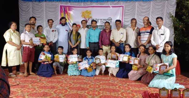 рд╕реНрдкрд░реНрдзрд╛ рдорд│рдЧрд╛рд╡ рдпреЗрдереАрд▓ рд╡реГрдХреНрд╖рд╡рд▓реНрд▓реА рдбреЗрд╡реНрд╣рд▓рдкрд░реНрд╕ рдпрд╛рдВрдЪреНрдпрд╛ рдЙрджреНрдпрд╛рдирд╛рдордзреНрдпреЗ рдкрд╛рд░ рдкрдбрд▓реА рдпрд╛ рд╕реНрдкрд░реНрдзреЗрддреАрд▓ рд╡рд┐рдЬреЗрддреНрдпрд╛рдВрдирд╛ рд╕рди рдорд░рд╛рдареА рджреВрд░рдЪрд┐рддреНрд░рд╡рд╛рдгреАрдЪреНрдпрд╛ рдХрд▓рд╛рдХрд╛рд░рд╛рдВрдЪреНрдпрд╛ рд╣рд╕реНрддреЗ рдкрд╛рд░рд┐рддреЛрд╖рд┐рдХреЗ рдкреНрд░рджрд╛рди рдХрд░рдгреНрдпрд╛рдд рдЖрд▓реА.рд▓рд╣рд╛рди рдореБрд▓рд╛рдВрдЪреНрдпрд╛ рдпрд╛ рд╢реНрд▓реЛрдХ рдЧрд╛рдпрди рд╕реНрдкрд░реНрдзреЗрдордзреНрдпреЗ рдпреЗрдКрди рддреНрдпрд╛рдВрдЪреНрдпрд╛ рд╕реНрдкрд╖реНрдЯ рдЖрд╡рд╛рдЬрд╛рддреАрд▓ рдЙрдЪреНрдЪрд╛рд░рд╛рддреАрд▓ рд╢реНрд▓реЛрдХ рдРрдХреВрди рдорди рднрд╛рд░рд╛рд╡реВрди рдЧреЗрд▓реЗ рддреНрдпрд╛рдВрдЪреНрдпрд╛рд╕реЛрдмрдд рдХрд╛рд╣реА рдХрд╛рд│ рдШрд╛рд▓рд╡рдгреНрдпрд╛рд╕ рдорд┐рд│рд╛рд▓реЗ рдпрд╛рдмрджреНрджрд▓ рдЖрдкрдгрд╛рд╕ рдЕрддрд┐рд╡ рдЖрдирдВрдж рд╣реЛрдд рдЖрд╣реЗ рд╡реЗрддреЛрдмрд╛ рд╕рд╛рд░рдЦреНрдпрд╛ рдорд╛рд▓рд┐рдХреЗрдордзреВрди рдЫреЛрдЯреНрдпрд╛ рдкрдбрджреНрдпрд╛рд╡рд░ рдпреЗрдгрд╛рд░реЗ рдЖрдореНрд╣реА рдЫреЛрдЯреЗ рдХрд▓рд╛рдХрд╛рд░ рдЖрд╣реЛрдд рддрд░реАрд╕реБрджреНрдзрд╛ рдЖрдкрдгрд╛рд╕ рдпрд╛ рдореЛрдареНрдпрд╛ рд╕реНрдкрд░реНрдзреЗрдордзреНрдпреЗ рд╕рд╣рднрд╛рдЧреА рдХрд░реВрди рджрд┐рд▓реЗ рдпрд╛рдмрджреНрджрд▓ рдорди рднрд░реВрди рдЖрд▓реЗ рдЕрд╕рд▓реНрдпрд╛рдЪреЗ рдЧреМрд░рд╡реЛрджреНрдЧрд╛рд░ рд╕рди рдорд░рд╛рдареАрдЪреНрдпрд╛ рд╡реЗрддреЛрдмрд╛ рдорд╛рд▓рд┐рдХреЗрддреАрд▓ рднреЛрд│реНрдпрд╛ рдорд╛рдорд╛ рдлреЗрдо рд╡рд┐рд╡реЗрдХ рд╡рд╛рд│рдХреЗ рдпрд╛рдВрдиреА рд╡реНрдпрдХреНрдд рдХреЗрд▓реЗ рддреНрдпрд╛рдВрдЪреНрдпрд╛рд╕рд╣ рдпрд╛ рдорд╛рд▓рд┐рдХреЗрддреАрд▓ рд╢рд╛рд▓рдЧреНрдпрд╛ рдлреЗрдо рдордВрдЧрд▓ рд░рд╛рдгреЗ рдпрд╛рд╣реА рдЙрдкрд╕реНрдерд┐рдд рд╣реЛрддреНрдпрд╛