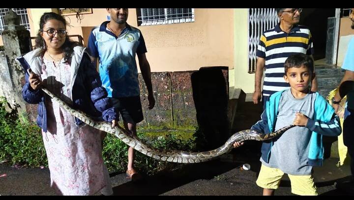 *🎴सावंतवाडी, दि-१०*:-सावंतवाडी येथील खासकीलवाडा येथे दिनांक ९ जानेवारी रोजी रात्री ११.३० वाजता एक भला मोठा अजगर येथील रहिवासी सुदेश विरनोडकर यांनी एका घरामध्ये शिरताना पाहिले व लगेचच सावंतवाडी येथील सर्पमित्र नवीद हेरेकर यांना संपर्क साधला. नवीद हेरेकर यांची पत्नी सौ. नबीला हेरेकर व मुलगा कु. कबीर हेरेकर यांनी या अजगराला पकडून त्याच्या नैसर्गिक अधिवासात सोडले.हेरेकर कुटुंब हे नेहमी निसर्ग व पर्यावरण रक्षण करण्यासाठी आपल्या परीने प्रयत्न करीत असतात.
