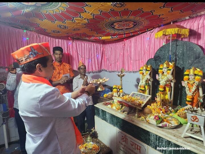 *🎴 नांदगाव,दि.२२*:-नांदगांव दशक्रोशीतील श्रीराम भक्तांच्या वतीने भव्य मिरवणूक व श्रीराम महाआरतीचे आयोजन करण्यात आले होते. त्यानिमित्त नांदगांव गोसावीवाडी येथील श्रीराम मंदिरात आ. नितेश राणे यांच्या हस्ते महाआरती करण्यात आली. यावेळी रामभक्तांनी जय श्री राम , प्रभु रामचंद्र की जय हो चा श्रीराम भक्तांनी केला जयघोष केला.यावेळी नांदगांव सरपंच भाई मोरजकर , माजी जिल्हा परिषद सदस्य नागेश मोरये, शेतकरी खरेदी विक्रीसंघ संचालक पंढरी वायंगणकर ,असलदे सरपंच चंद्रकांत डामरे , असलदे सोसायटी चेअरमन,पत्रकार भगवान लोके , हर्षदा वाळके,भाग्यलक्ष्मी साटम,आयनल माजी सरपंच बापू फाटक,भालचंद्र साटम,प्रदीप हरमळकर,कोळोशी सरपंच गुरुनाथ आचरेकर,व्हॉईस चेअरमन दयानंद हडकर, तोंडवली सरपंच मानली गुरव,सुशील इंदप,बुवा संतोष मिराशी,पंढरी पारकर ,माजी सरपंच शशिकांत शेट्ये, हेमंत परुळेकर,दिलीप फोंडके , रिक्षा संघटना अध्यक्ष विलास कांडर ,नांदगाव व्यापारी संघटना अध्यक्ष पपी सापळे,कमलेश पाटील ,पत्रकार उत्तम सावंत, ऋषिकेश मोरजकर,संजय डगरे,लक्ष्मण लोके,महेश लोके,रघुनाथ ,राजा म्हसकर आदींसह विविध गावातून आलेले सर्व राम भक्त उपस्थित होते.श्रीराम प्रतिष्ठापना कार्यक्रमानिमित्त नांदगाव येथील श्रीराम भक्तांनी काढलेल्या मिरवणुकीचे व कार्यक्रमाचे कौतुक यावेळी आमदार नितेश राणे यांनी केले.