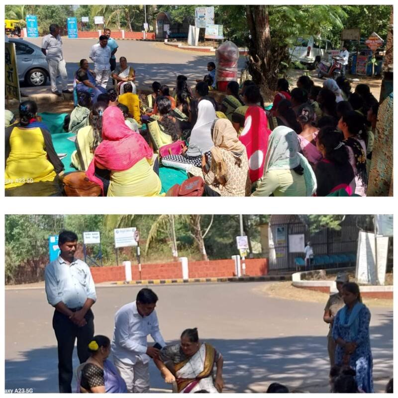 🎴ओरोस, दि-०१:- जिल्हा परिषद सिंधुदुर्ग समोर अंगणवाडी कर्मचाऱ्यांचे त्यांच्या विविध मागण्यां साठी ठिय्या आंदोलन सुरू होते. या आंदोलना दरम्यान उद्धव बाळासाहेब ठाकरे शिवसेनेचे उपजिल्हाप्रमुख बाबुराव धुरी यांनी आंदोलनकर्त्या अंगणवाडी कर्मचाऱ्यांच्या नेत्या कमला ताई परुळेकर तसेच इतर अंगणवाडी कर्मचाऱ्यांची भेट घेत अंगणवाडी कर्मचाऱ्यांच्या ठिय्या आंदोलनाला पाठिंबा दर्शविला यावेळी संदेश वरक, सुनील गवस, बाबा खतीब, दीपक जाधव, श्रेयली गवस उपस्थित होते.