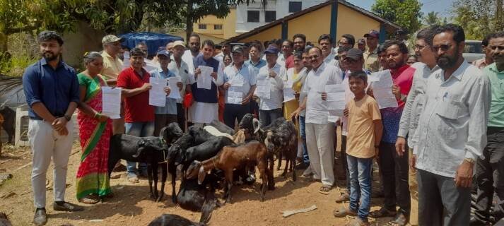*🎴सावंतवाडी, दि-०४*:-कुक्कुटपालनाच्या माध्यमातून महिलांनी पुढे येत घरोघरी अंड्यांचे उत्पादन घ्यावे जेणेकरून येणाऱ्या काळात सिंधुदुर्ग जिल्हा “हॅप्पी एग” म्हणुन भविष्यात ओळखला जाईल. यासाठी आवश्यक असलेले सर्व सहकार्य चांदा ते बांदा योजनेअंतर्गत देण्यात येईल असे ग्वाही शालेय शिक्षण मंत्री दीपक केसरकर यांनी दिली.तळवडे येथे चांदा ते बांदा योजनेअंतर्गत लाभार्थ्यांना कुक्कुटग्राम आणि शेळी गट वाटप कार्यक्रम प्रसंगी मंत्री केसरकर बोलत होते. यावेळी व्यासपीठावर तळवडे सरपंच विनिता मेस्त्री, माजी उपनगराध्यक्ष राजन पोकळे, पशुसंवर्धन उपायुक्त डॉ.श्री खरे, सहाय्यक उप आयुक्त डॉक्टर संसारे निलेश रेड्डी, शिंदे शिवसेना जिल्हाध्यक्ष अशोक दळवी, विधानसभा संपर्कप्रमुख प्रेमानंद देसाई, तालुका प्रमुख नारायण उर्फ बबन राणे, जिल्हा बँक संचालक विद्याधर परब, रत्नसिंधु योजनेचे सदस्य सुरज परब, रवी परब,जालिंदर परब, गुणाजी गावडे,योगेश नाईक,साईप्रसाद राणे आदी उपस्थित होते.