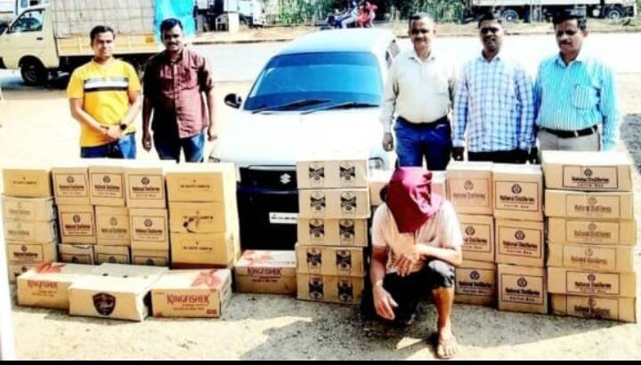 *🎴बांदा, दि-११*:-उत्पादन शुल्क विभागाच्या इन्सुली तपासणी नाका पथकाने बांद्यात अल्टो कारमधून २ लाख ५३ हजार रुपयांच्या अवैध दारूसह एकूण ४ लाख ३ हजार ४४० रुपयांचा मुद्देमाल जप्त केला.ही कारवाई बांदा पत्रादेवी रोडवर पोस्ट ऑफिसजवळ करण्यात आली. याप्रकरणी महेश कृष्णा दाभोलकर (सावंतवाडी) याला ताब्यात घेण्यात आले.ही कारवाई राज्य उत्पादन शुल्क विभागाचे अधिक्षक मनोज शेवरे यांच्या मार्गदर्शनाखाली निरीक्षक पाटील, प्रदीप दुय्यम तानाजी रासकर, सहाय्यक दुय्यम निरीक्षक गोपाळ राणे,जवान दीपक वायदंडे,प्रसाद माळी,रणजित शिंदे यांनी केली.पुढील तपास दुय्यम निरिक्षक प्रदीप रासकर करीत आहेत.