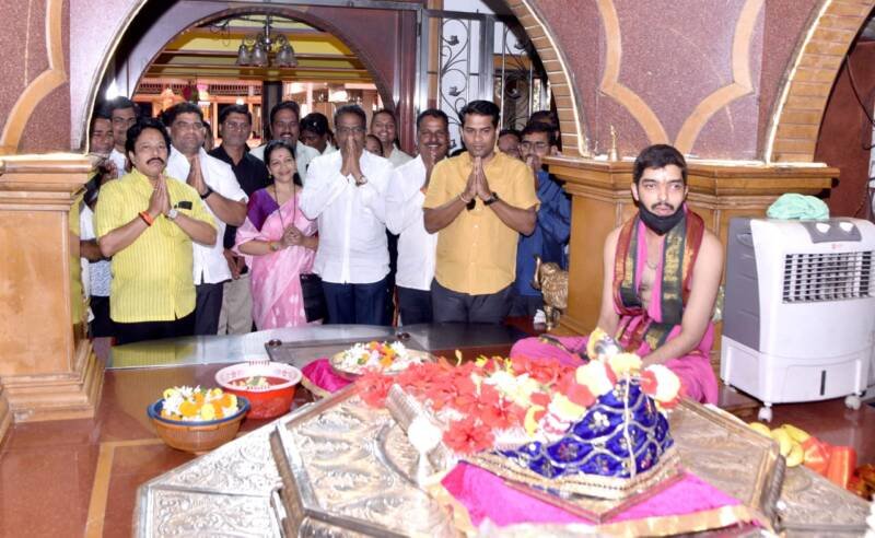 फोटो – भालचंद्र महाराज समाधीस्थळी महाअभिषेका वेळी उपस्थित आम.वैभव नाईक,संदेश पारकर,सतीश सावंत, सुशांत नाईक,नीलम पालव व शिवसेना पदाधिकारी व कार्यकर्ते ( छाया – अनिकेत उचले)