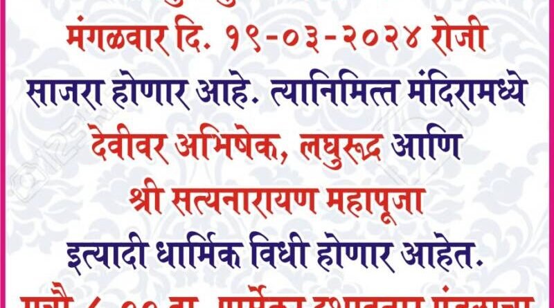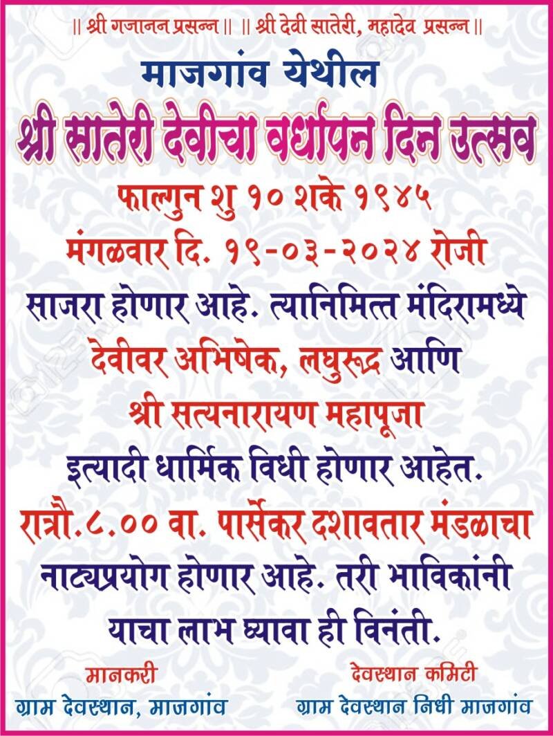 ЁЯЫС рдорд╛рдЬрдЧрд╛рдВрд╡ рдпреЗрдереАрд▓ рд╢реНрд░реА рд╕рд╛рддреЗрд░реА рджреЗрд╡реАрдЪрд╛ рд╡рд░реНрдзрд╛рдкрди рджрд┐рди рдЙрддреНрд╕рд╡ рдЙрджреНрдпрд╛