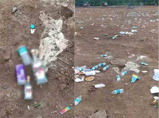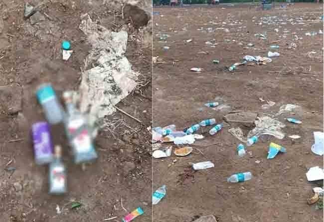 बांद्यात अंगणवाडी आवारात बाटल्यांचा खच