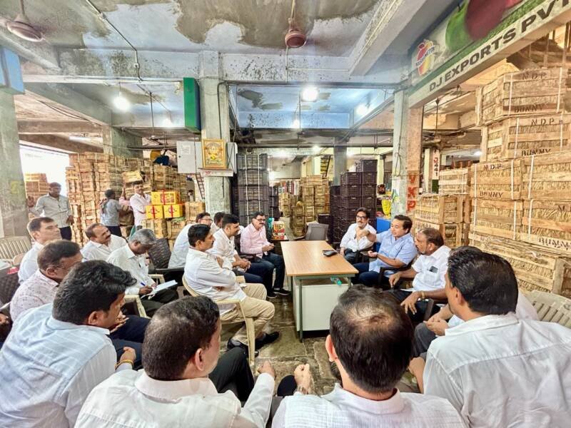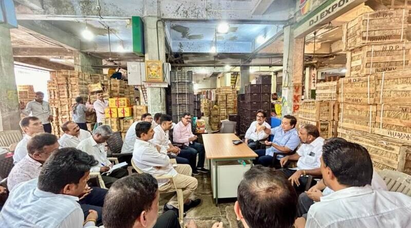 *🎴मुंबई, दि-२६*:-आमदार नितेश राणे यांनी आज मुंबई येथील एपीएमसी मार्केटला भेट देऊन आंबा उत्पादक शेतकऱ्यांना भेडसावणाऱ्या समस्यांबाबत चर्चा केली. एपीएमसी मार्केटचे प्रमुख श्री पानसरे व त्यांच्या प्रतिनिधी समवेत यावेळी सविस्तर चर्चा केली. सकारात्मक झालेल्या चर्चेत आंबा उत्पादक शेतकऱ्यांचे अनेक प्रश्न सुटणार आहेत. त्यामुळे एपीएमसी मार्केट ला आमदार नितेश राणे यांनी दिलेली ही भेट आंबा उत्पादक शेतकऱ्यांना दिलासा देणारी ठरणार आहे.