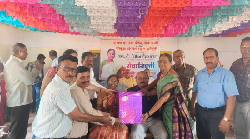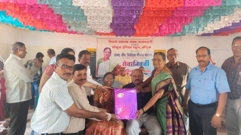 рдЪреМрдХреВрд│ рдЗрдВрдЧреНрд▓рд┐рд╢ рд╕реНрдХреВрд▓ рдЪреМрдХреВрд│ рддрд╛ . рд╕рд╛рд╡рдВрддрд╡рд╛рдбреА рдпрд╛ рдкреНрд░рд╢рд╛рд▓реЗрдЪреНрдпрд╛ рдЬреЗрд╖реНрда рд╢рд┐рдХреНрд╖рд┐рдХрд╛ рд╢реНрд░реАрдо. рдирд┐рд╡реЗрджрд┐рддрд╛ рд╢реНрд░реАрдХрд╛рдВрдд рдирд╛рд░рдХрд░ рдпрд╛ рдирд┐рдпрдд рд╡рдпреЛрдорд╛рдирд╛рдиреБрд╕рд╛рд░ рджрд┐. рейрез рдорд╛рд░реНрдЪ реирежреирек рд░реЛрдЬреА рд╕реЗрд╡рд╛рдирд┐рд╡реГрддреНрдд рдЭрд╛рд▓реНрдпрд╛. рддреНрдпрд╛рдВрдЪреНрдпрд╛ рд╕реЗрд╡рд╛рдирд┐рд╡реГрддреНрддреА рдирд┐рдорд┐рддреНрдд рд╢реБрднреЗрдЪреНрдЫрд╛ рдкреНрд░рджрд╛рди рд╕реЛрд╣рд│рд╛ рдЪреМрдХреВрд│ рдЗрдВрдЧреНрд▓рд┐рд╢ рд╕реНрдХреВрд▓ рдЪреНрдпрд╛ рд╕рднрд╛рдЧреГрд╣рд╛рдордзреЗ рд╕рд░реНрд╡ рд╕рдиреНрдорд╛рдирдирд┐рдп рдорд╛рдиреНрдпрд╡рд░ рд╢реНрд░реА рднрд░рдд рдЧрд╛рд╡рдбреЗ, рд╢реНрд░реАрдо рдкрд╛рд░рдХрд░ рдореЕрдбрдо рдпрд╛рдВрдЪреЗ рд╕реНрдиреЗрд╣реА , рдЪреМрдХреВрд│ рдЗрдВрдЧреНрд▓рд┐рд╢ рд╕реНрдХреВрд▓рдЪреЗ рд╡рд┐рджреНрдпрд╛рд░реНрдереА , рджреЛрдбрд╛рдорд╛рд░реНрдЧ рдЗрдВрдЧреНрд▓рд┐рд╢ рд╕реНрдХреВрд▓ рдЪреЗ рдЖрдЬреА рд╡ рдорд╛рдЬреА рдореБрдЦреНрдпрд╛рдзреНрдпрд╛рдкрдХ рд╢рд┐рдХреНрд╖рдХ ,рд▓рд┐рдкрд┐рдХ рд░реБрдкреЗрд╢ рдореЛрд░рдЬрдХрд░,рдИрддрд░ рдХрд░реНрдордЪрд╛рд░реА рддреНрдпрд╛рдВрдЪреЗ рдкрддреА рд╢реНрд░реАрдХрд╛рдВрдд рдирд╛рд░рдХрд░ рд╡ рдХрдиреНрдпрд╛ рд╡ рдЗрддрд░ рдорд╛рдиреНрдпрд╡рд░рд╛рдВрдЪреНрдпрд╛ рдЙрдкрд╕реНрдерд┐рдд рдХрд╛рд░реНрдпрдХреНрд░рдо рдореЛрдареНрдпрд╛ рдЙрддреНрд╕рд╛рд╣рд╛рдд рдкрд╛рд░ рдкрдбрд▓рд╛. рдпрд╛рд╡реЗрд│реА рд╢реНрд░реАрдорддреА рдкрд╛рд░рдХрд░ рдпрд╛рдВрдиреА рдЖрдкрд▓реНрдпрд╛ рд╕реЗрд╡реЗрддреАрд▓ рдЕрдиреЗрдХ рдЧрдд рдЖрдард╡рдгреАрдВрдирд╛ рдЙрдЬрд╛рд│рд╛ рджрд┐рд▓рд╛.