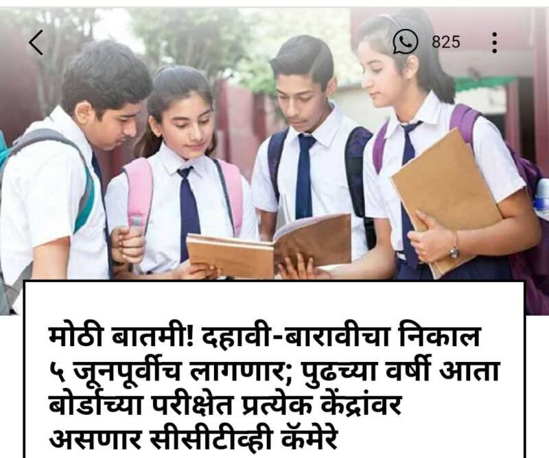 рдЗрдпрддреНрддрд╛ рджрд╣рд╛рд╡реА рд╡ рдЗрдпрддреНрддрд╛ рдмрд╛рд░рд╛рд╡реАрдЪреНрдпрд╛ рдмреЛрд░реНрдб рдкрд░реАрдХреНрд╖рд╛ рд╕рдВрдкрд▓реНрдпрд╛рдирдВрддрд░ рдЙрддреНрддрд░рдкрддреНрд░рд┐рдХрд╛рдВрдЪреА рддрдкрд╛рд╕рдгреА рдпреБрджреНрдзрдкрд╛рддрд│реАрд╡рд░ рд╕реБрд░реБ рдЖрд╣реЗ. рдЖрддрд╛рдкрд░реНрдпрдВрдд рджреЛрдиреНрд╣реА рд╡рд░реНрдЧрд╛рдЪреНрдпрд╛ рд╕рд░реНрд╡рдЪ рд╡рд┐рд╖рдпрд╛рдВрдЪреНрдпрд╛ рдЬрд╡рд│рдкрд╛рд╕ реорел рдЯрдХреНрдХреЗ рдЙрддреНрддрд░рдкрддреНрд░рд┐рдХрд╛ рддрдкрд╛рд╕реВрди рдкреВрд░реНрдг рдЭрд╛рд▓реНрдпрд╛ рдЖрд╣реЗрдд. рдкреНрд░рд╛рддреНрдпрдХреНрд╖рд┐рдХ рдкрд░реАрдХреНрд╖рд╛рдВрдЪреЗ рдЧреБрдг рдпрд╛рдкреВрд░реНрд╡реАрдЪ рд╢рд╛рд│рд╛рдВрдиреА рдСрдирд▓рд╛рдЗрди рдкрджреНрдзрддреАрдиреЗ рдмреЛрд░реНрдбрд╛рд▓рд╛ рдкрд╛рдард╡рд┐рд▓реЗ рдЖрд╣реЗрдд. рджрд░рд╡рд░реНрд╖реА рдкрд╣рд┐рд▓реНрдпрд╛рдВрджрд╛ рдмрд╛рд░рд╛рд╡реАрдЪрд╛ рдирд┐рдХрд╛рд▓ рдЬреВрдирдЪреНрдпрд╛ рдкрд╣рд┐рд▓реНрдпрд╛ рдЖрдард╡рдбреНрдпрд╛рдд рддрд░ рджрд╣рд╛рд╡реАрдЪрд╛ рдирд┐рдХрд╛рд▓ рджреБрд╕рд▒реНрдпрд╛ рдЖрдард╡рдбреНрдпрд╛рдд рдЬрд╛рд╣реАрд░ рд╣реЛрддреЛ. рдкрдг, рдпрдВрджрд╛ рджреЛрдиреНрд╣реА рд╡рд░реНрдЧрд╛рдВрдЪреЗ рдирд┐рдХрд╛рд▓ рел рдЬреВрдирдкреВрд░реНрд╡реАрдЪ рдЬрд╛рд╣реАрд░ рд╣реЛрддреАрд▓, рдЕрд╢реА рд╕рджреНрдпрдГрд╕реНрдерд┐рддреА рдЕрд╕рд▓реНрдпрд╛рдЪреЗ рдмреЛрд░реНрдбрд╛рддреАрд▓ рд╡рд░рд┐рд╖реНрда рд╕реВрддреНрд░рд╛рдВрдиреА рд╕рд╛рдВрдЧрд┐рддрд▓реЗ.