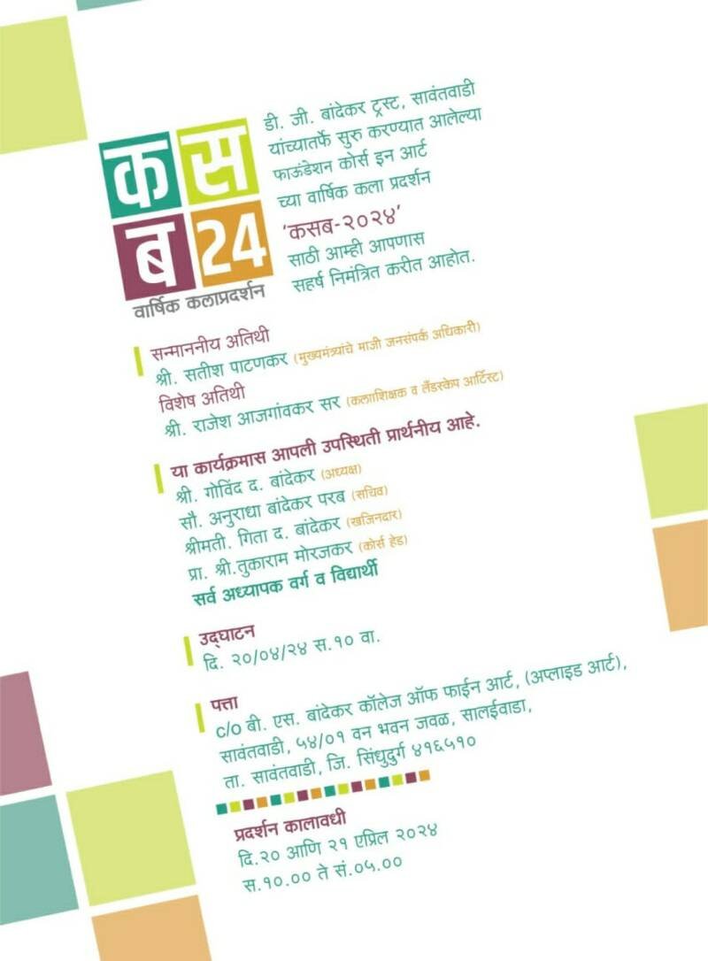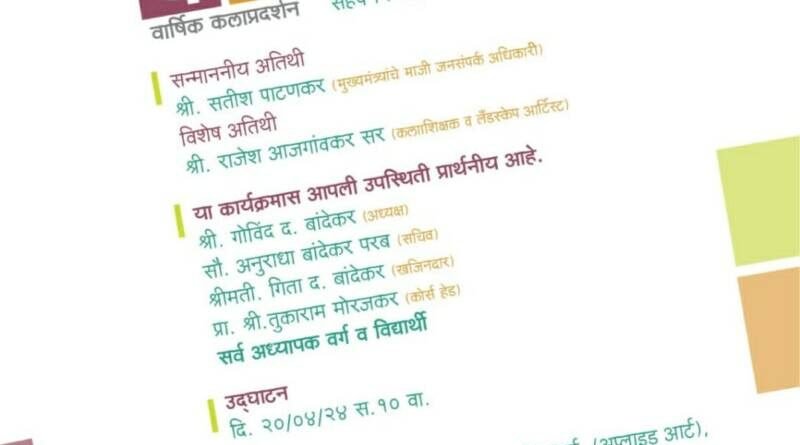 ЁЯЫС рдбреА. рдЬреА. рдмрд╛рдВрджреЗрдХрд░ рдЯреНрд░рд╕реНрдЯ, рд╕рд╛рд╡рдВрддрд╡рд╛рдбреА, рдлрд╛рдЙрдВрдбреЗрд╢рди рдХреЛрд░реНрд╕ рдЗрди рдЖрд░реНрдЯрдЪреЗ рд╡рд╛рд░реНрд╖рд┐рдХ рдХрд▓рд╛рдкреНрд░рджрд░реНрд╢рди ‘рдХрд╕рдм реирежреирек’