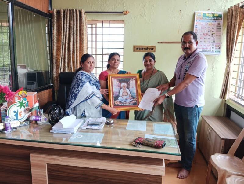 यावेळी सरपंच प्रियांका नाईक व ग्रामविस्तार अधिकारी लीला मोर्ये उपस्थित होत्या. महाराजांचे तैलचित्र कार्यालयात लावण्याचे आश्वासन सरपंच नाईक यांनी यावेळी दिले.