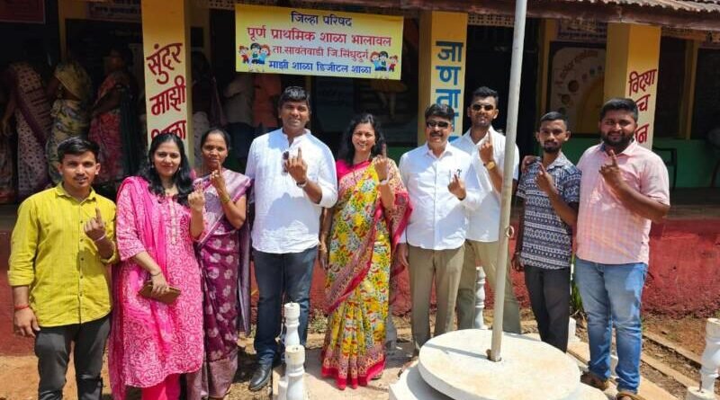 *🎴सावंतवाडी, दि-०७*:-शरदचंद्र पवार राष्ट्रवादी काँग्रेस पार्टीच्या कोकण विभाग महिला अध्यक्षा अर्चना घारे- परब यांनी जिल्हा परिषद पूर्व प्राथमिक शाळा भालावल येथे जाऊन आपला मतदानाचा हक्क बजावला. यावेळी त्यांचे पती संदीप घारे यांनी देखील मतदानाच कर्तव्य पार पाडल. इंडिया आघाडीचे उमेदवार खासदार विनायक राऊत हॅट्रिक करतील असा विश्वास देखील अर्चना घारे परब यांनी यावेळी व्यक्त केला. यावेळी विनायक परब, सिद्धी परब, वैभव परब, ऋतिक परब, रजनी गवस आदी उपस्थित होते.