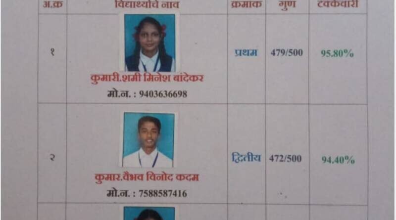 *🛑डॉ एस एस कुडाळकर हायस्कूल पोखरणचा दहावीचा निकाल शंभर टक्के*