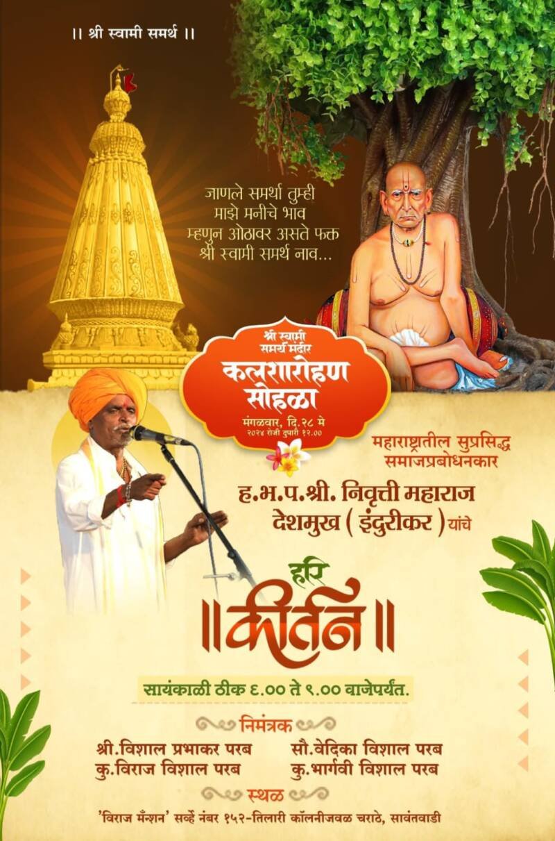 श्री स्वामी समर्थ मंदिराचा कलशारोहण सोहळ्यानिमित्त ह भ प श्री इंदुरीकर महाराज यांचे हरिकीर्तन