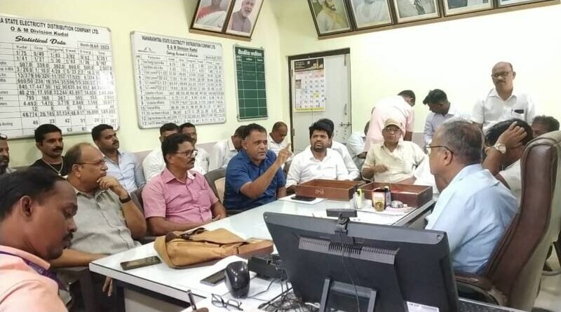 जिल्हा व्यापारी महासंघ व जिल्हा वीज ग्राहक संघटना पदाधिकाऱ्यांची कुडाळ महावितरणला धडक