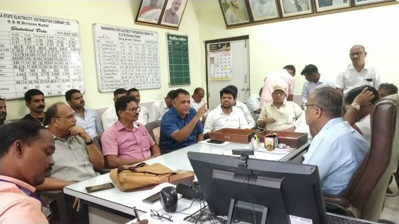 कुडाळ शहरातील अधिकाऱ्यांच्या वर्तणूक व कामावर वीज ग्राहक आणि व्यापाऱ्यांची प्रचंड नाराजी असून त्यांच्या रोषाला कार्यकारी अभियंत्यांना सामोरे जावे लागले. झाडे कटिंग, जुनाट खांब मागणी करूनही न बदलल्याने अपघात होत आहेत आणि त्याची जबाबदारी महावितरणवर असेल असा इशारा वी. ग्रा. संघटना जिल्हाध्यक्ष श्रीराम शिरसाट, गोविंद सावंत व किरण शिंदे आदी पदाधिकाऱ्यांनी दिला, त्याचप्रमाणे शहरातील वीज अधिकारी परब मॅडमची तात्काळ बदली करण्यात यावी अशीही जोरदार मागणी केली.