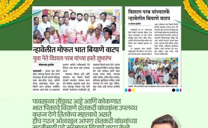 *🎴न्हावेली, दि-२९*:-भाजप युवा मोर्चा प्रदेश उपाध्यक्ष विशाल परब यांच्या माध्यमातून श्री देवी माऊली घोडेमुख युवक कला-क्रीडा मंडळ न्हावेली यांच्या संकल्पनेतून मोफत भात, बियाणे वाटप कार्यक्रम आयोजित करण्यात आला होता. या उपक्रमाचा शुभारंभ न्हावेली-पार्सेकरवाडी येथे विशाल परब यांच्या हस्ते करण्यात आला.पावसाळा तोंडावर आहे व कोकणात भात पिकाचे बियाणे शेतकरी बांधवांना उपलब्ध करून देणे तितकेच महत्त्वाचे असते. हीच गरज ओळखून विशाल परब यांनी शेतकरी बांधवांच्या मदतीसाठी पुढे सरसावत बियाणे वाटप केले. त्यांच्या या उपक्रमाचे विविध स्तरातून कौतुक होत आहे. कार्यक्रमप्रसंगी मंडळाचे अध्यक्ष प्रसाद गावडे, उपाध्यक्ष समीर पार्सेकर, सचिव मोहन पालेकर, खजिनदार तुळशिदास पार्सेकर, संपर्क उपाध्यक्ष राज भवन, सुंदर पार्सेकर, बाबा गावडे आदी मान्यवर उपस्थित होते.