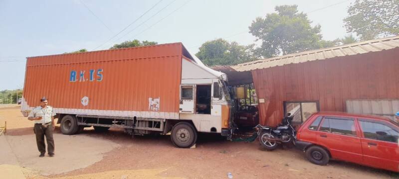 *🎴बांदा, दि-०३*:-कागदपत्रांच्या तपासणीसाठी उभा असलेला कंटेनर थेट आरटीओ कार्यालयात घुसल्याची घटना पत्रादेवी (गोवा) येथे घडली. सुदैवाने यात कोणीही जखमी झाले नाही. मात्र, यात नाक्याच्या चौकीसह दुचाकी व बाजूला असलेल्या मोटारीचे नुकसान झाले. ही घटना रविवारी दुपारी घडली. कागदपत्रांची तपासणी करण्यासाठी संबंधित चालक कंटेनर उभा करुन निघून गेला. मात्र, तत्पूर्वी त्याने हॅण्डब्रेक लावला नसल्यामुळे हा अपघात घडला, असे तेथील अधिकाऱ्यांकडून सांगण्यात आले.रविवारी दुपारी हरियाणा येथील कंटेनर (एचआर ६९ सी ०६९९) तपासणीसाठी चालकाने पत्रादेवी – गोवा येथील आरटीओ तपासणी नाक्यासमोर उभा केला होता. चालक कंटेनरची कागदपत्रे घेऊन चौकीतील कार्यालयात गेला होता. मात्र, चालक हॅण्डब्रेक ओढण्यास विसरल्याने कंटेनर थेट चौकीत शिरला. यावेळी त्याठिकाणी कार्यरत असलेले अधिकारी गावकर व अन्य कर्मचारी यांनी सुरक्षित ठिकाणी धाव घेतल्याने ते बचावले. मात्र, यामध्ये दुचाकी, कार व चौकीचे नुकसान झाले. याठिकाणी नेहमीच वाहनांची व लोकांची वर्दळ मोठ्या प्रमाणात असते. मात्र, सुदैवाने जीवितहानी टळली. यापूर्वी देखील येथील तपासणी नाक्यावर अनेक अपघात झाले आहेत. काही वर्षांपूर्वी अबकारी। खात्याच्या नाक्यावर कंटेनर कोसळल्याने दोन कर्मचाऱ्यांना आपला जीव गमवावा लागला होता.