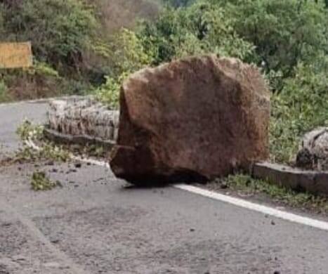 आंबोली घाटात भला मोठा दगड कोसळून रस्त्यावर