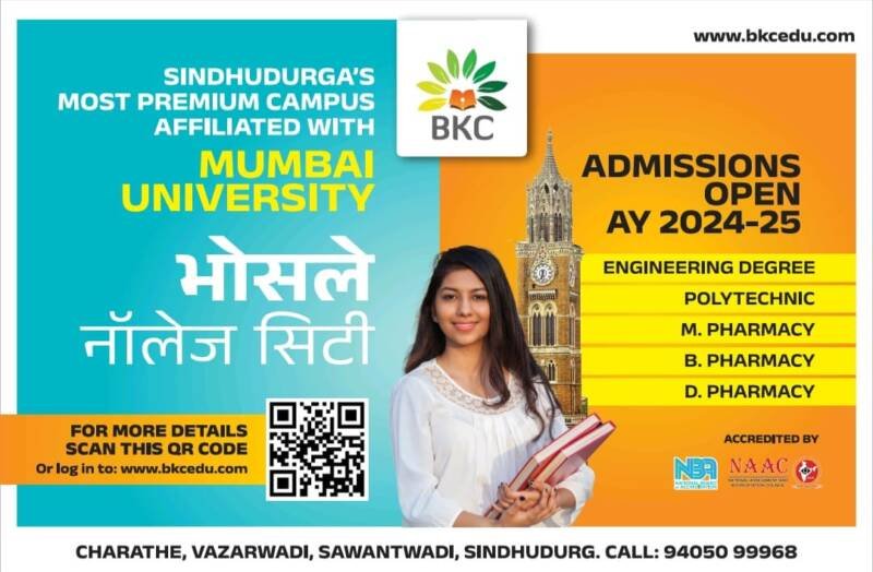 मुंबई विद्यापीठ संलग्न व नॅक मान्यताप्राप्त सिंधुदुर्ग जिल्ह्यातील एकमेव फार्मसी कॉलेज