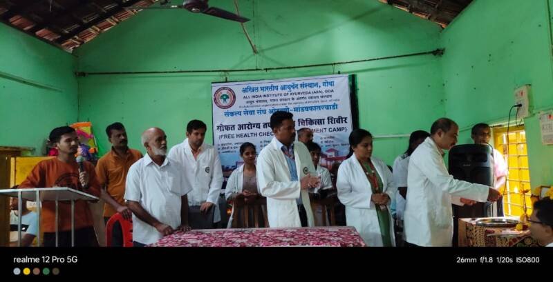 गोवा येथील अखिल भारतीय आयुर्वेद संस्थान आणि ओटवणे मांडवफातरवाडी येथील संकल्प सेवा संघ यांच्या यांच्या संयुक्त विद्यमाने ओटवणे मांडवफातरवाडी येथे आयोजित करण्यात आलेल्या मोफत आरोग्य तपासणी व चिकित्सा शिबिराच्या उद्घाटन प्रसंगी डॉ मोहन जोशी बोलत होते. यावेळी व्यासपीठावर गोवा येथील अखिल भारतीय आयुर्वेद संस्थानचे मेडिकल कॅम्प इन्चार्ज डॉ प्रशांत ससाणे, डॉ प्रसाद नार्वेकर, डॉ अखिला एम, डॉ रश्मी जोशी, ओटवणे येथील मुंबईस्थित उद्योजक सुरेश तावडे, ओटवणे शिक्षण प्रसारक मंडळाचे सचिव राजाराम वर्णेकर, प्रकाश पनासे, दाजी सावंत, रामचंद्र म्हापसेकर, शंकर म्हापसेकर, अखिल भारतीय आयुर्वेद संस्थानचे कर्मचारी सुमा नाईक, पूजा झोळंबेकर, गिरीश नाईक, ओंकार पाटील, प्रमोद सावंत, सागर धुरी आदी उपस्थित होते.