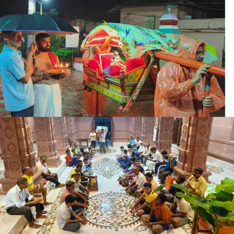 ‘рд╢рд┐рд╡рд╢рд┐рд╡ рд╢рд┐рд╡ рд╢рд┐рд╡ рд╕рд╛рдВрдм рд╕рджрд╛рд╢рд┐рд╡…рд╣рд░ рд╣рд░ рд╣рд░ рд╣рд░ рд╕рд╛рдВрдм рд╕рджрд╛рд╢рд┐рд╡’ рдЕрд╢рд╛ рд╡рд┐рд╡рд┐рдз рдЧрдЬрд░рд╛рдд рднрд╛рд╡рд┐рдХ рджрдВрдЧ рдЭрд╛рд▓реЗ. рдЖрд░рддреА рдирдВрддрд░ рдорд╛рдирдХрд░реА рд╕рдЧреБрдгрджрд╛рджрд╛ рд╕рд╛рд╡рдВрдд рдпрд╛рдВрдиреА рд╕рд░реНрд╡рд╛рдВрдЪреНрдпрд╛ рдХрд▓реНрдпрд╛рдгрд╛рд╕рд╛рдареА рдШрд╛рддрд▓реЗ. рддреНрдпрд╛рдирдВрддрд░ рд╕рд╛рдХрдбреЗ рддреАрд░реНрдердкреНрд░рд╕рд╛рдж рд╡рд╛рдЯрдгреНрдпрд╛рдд рдЖрд▓рд╛. рдорд┐рд░рдЧрд╛рдЪреА рдкрд╛рд▓рдЦреА рдЭрд╛рд▓реНрдпрд╛рдирдВрддрд░┬а рд╕реЛрдорд╡рд╛рд░ рдкрд╛рд╕реБрди рджрд░ рд╕реЛрдорд╡рд╛рд░реА рдордВрджрд┐рд░рд╛рдд рд░рд╛рддреНрд░реА рео рддреЗ реп рдпрд╛ рд╡реЗрд│реЗрдд рднрдЬрдирд╕реЗрд╡реЗрд▓рд╛ рдЖрд░рдВрдн рдЭрд╛рд▓рд╛ рдЖрд╣реЗ.