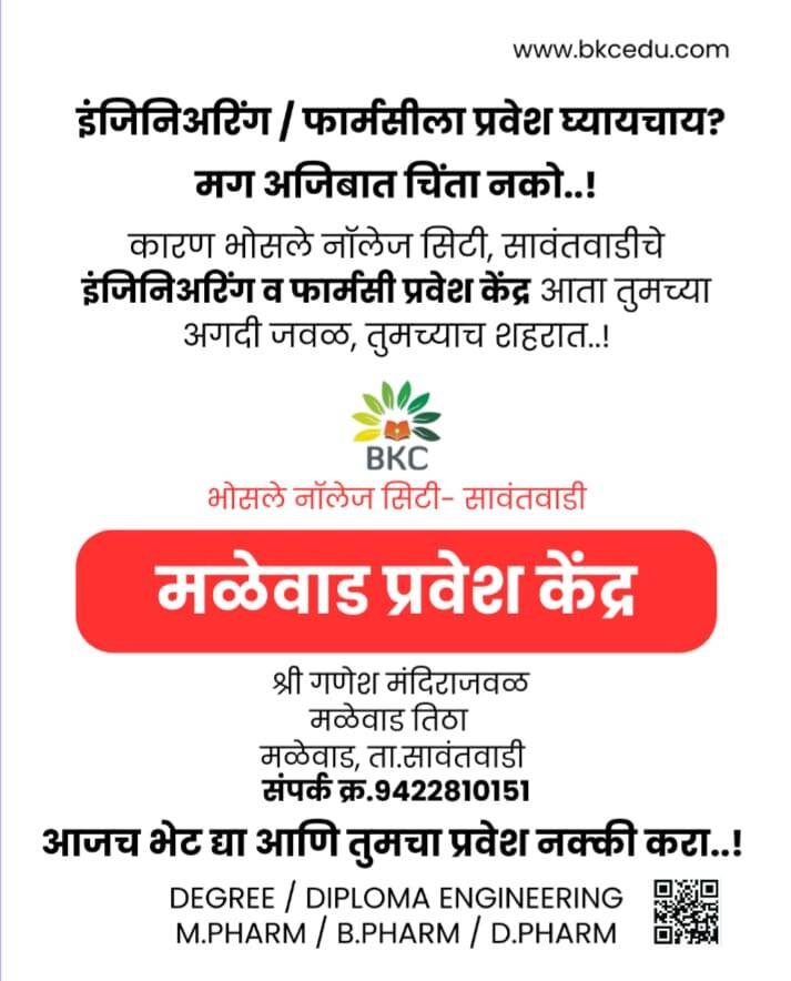 _🧑🏻🏫कारण *भोसले नॉलेज सिटी* सावंतवाडीचे इंजिनिअरिंग व फार्मसी प्रवेश केंद्र आता तुमच्या अगदी जवळ, *तुमच्याच शहरात..!*_