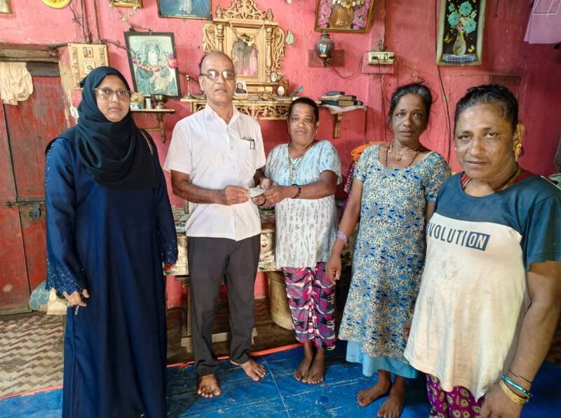 *🎴सावंतवाडी, दि-१८*:-माय बाप नसलेल्या दिव्यांग डिमिलो भगिनींच्या मदतीसाठी दानशूर सरसावत आहेत.वृत्तपत्र व सोशल मीडियावरील बातमी वाचून मातोंड हायस्कूलचे माजी मुख्याध्यापक श्री.विजय पुंडलिक मांजलकर गाव लोरे ता. वैभववाडी येथून येऊन माय बापाचा आधार हरपलेल्या डिमेलो दिव्यांग भगिनींना रोख रुपये दहा हजार रुपये देऊन आर्थिक मदत केली. तसेच मांजलकर सर सामाजिक भान राखून गोरगरिबांना मदत करत असतात.सामाजिक बांधिलकीची सचिव समीरा खलील, रवी जाधव व रुपा मुद्राळे यांनी त्यांचे मनःपूर्वक आभार मानले. त्याचप्रमाणे शहरातील दानशूर व्यक्ती त्या भगिनींसाठी जीवनावश्यक वस्तू पुरवण्यासाठी पुढाकार घेत आहे त्यांचेही आभार सामाजिक बांधिलकी प्रतिष्ठानचे अध्यक्ष श्री सतीश बागवे यांनी मानले आहे.