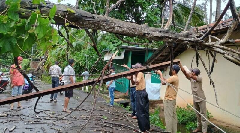 खासकीलवाडा येथे घरावर झाड कोसळले