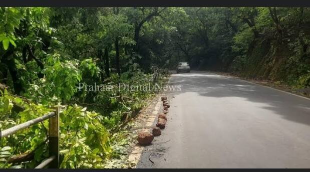 *🎴न्हावेली, दि-२७*:-सावंतवाडी-रेडी मार्गावरील मळगाव घाटीत रविवारी मोठे झाड कोसळले. हे झाड दरीलगत उभारण्यात आलेल्या रेलिंगवर कोसळल्याने रेलिंग तुटले. रस्त्यालगत धोकादायकरित्या असलेली झाडे हटविण्याच्या प्रयत्नात हे झाड रेलिंगवर कोसळले. वनविभागाकडून ही धोकादायक झाडे हटविण्याची मोहीम राबविण्यात आली होती. या तुटलेल्या रेलिंगमुळे वाहनधारकांना धोका निर्माण झाला असून सार्वजनिक बांधकाम विभागाने या ठिकाणी तात्काळ नवीन रेलिंग बसवावे, अशी मागणी वाहनधारकांमधून होत आहे. मळगाव घाटीत अनेक ठिकाणी रेलिंग तुटले आहे. तर संरक्षक कठड्याचा भागही अनेक ठिकाणी कोसळला आहे. त्यातच रविवारी डोंगराच्या दिशेने असलेले भलेमोठे झाड तोडत असताना ते रस्त्यावर कोसळले. हे झाड कोसळल्यामुळे आधीच मोडकळीस आलेले रेलिंग पूर्णपणे निखळून पडले. त्यामुळे येथील दरीचा भाग मोकळा झाल्याने या ठिकाणी वाहन दरीत कोसळण्याची भीती निर्माण झाली आहे. सार्वजनिक बांधकाम विभागाने या गोष्टीची तात्काळ दखल घेऊन येथील रेलिंग नव्याने उभारावे. तसेच अन्य ठिकाणी तुटलेल्या रेलिंगचीही दुरुस्ती करावी, अशी मागणी होत आहे. याबाबत माजी सभापती राजू परब यांनी काही दिवसांपूर्वी सार्वजनिक बांधकाम विभागाचे लक्ष वेधले होते. मात्र, त्याकडे दुर्लक्ष करण्यात आले असून बांधकाम विभाग अपघाताची वाट पाहत आहे का, असा सवाल राजू परब यांनी उपस्थित केला आहे.दरम्यान, सार्वजनिक बांधकाम विभागाने तात्पुरती दक्षता म्हणून या ठिकाणी दगड रचून ठेवले आहेत. तसेच तुटलेले पाईप अडकवून ठेवले आहेत. मात्र, दगड लावून ठेवलेल्या भागातील रस्ता खचण्यास सुरुवात झाली असून मोठ्या पावसात रस्ता खचून थोका निर्माण होण्याची शक्यता नाकारता येत नाही. त्यामुळे कायमस्वरुपी उपाययोजना करण्याची मागणी होत आहे. दरम्यान, दोन वर्षांपूर्वी या मार्गावरील ब्रिटिशकालीन मोरी कोसळल्यामुळे हा मार्ग ऐन पावसळ्यात तब्बल महिनाभर बंद होता. त्यामुळे वाहनचालकांना, इन्सुली तसेच आकेरीमार्गे सावंतवाडी गाठावी लागत होती. ती परिस्थिती लक्षात घेता ती वेळ येण्यापूर्वीच सार्वजनिक बांधकाम विभागाने वेळीच पाऊल उचलणे गरजेचे आहे
