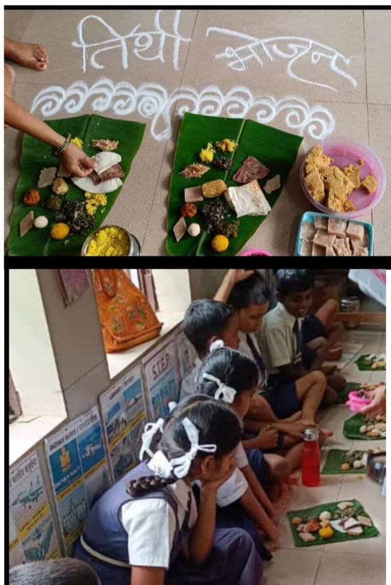 рддрд┐рдереА рднреЛрдЬрди рдЙрдкрдХреНрд░рдорд╛рдд рдкрд╛рд▓рдХрд╛рдВрдиреА рдЯрд╛рд│рдХрд│рд╛,рдХреЗрд│рдлреВрд▓рд╛рдЪреА рднрд╛рдЬреА, рдЕрд│реБ,рдирд╛рдЪрдгреА рднрд╛рдХрд░реА, рд╢реЗрдВрдЧрджрд╛рдгрд╛ рд▓рд╛рдбреВ,рдХреЛрдВрдмрд╛рдЪреА рднрд╛рдЬреА рдЕрд╕реЗ рд╡рд┐рд╡рд┐рдз рдкрджрд╛рд░реНрде рдмрдирд╡реВрди рд╣рд╛ рд╢рд╛рд▓реЗрдп рд╕рдкреНрддрд╛рд╣ рд╕рд╛рдЬрд░рд╛ рдХрд░рдгреНрдпрд╛рдд рдЖрд▓рд╛.