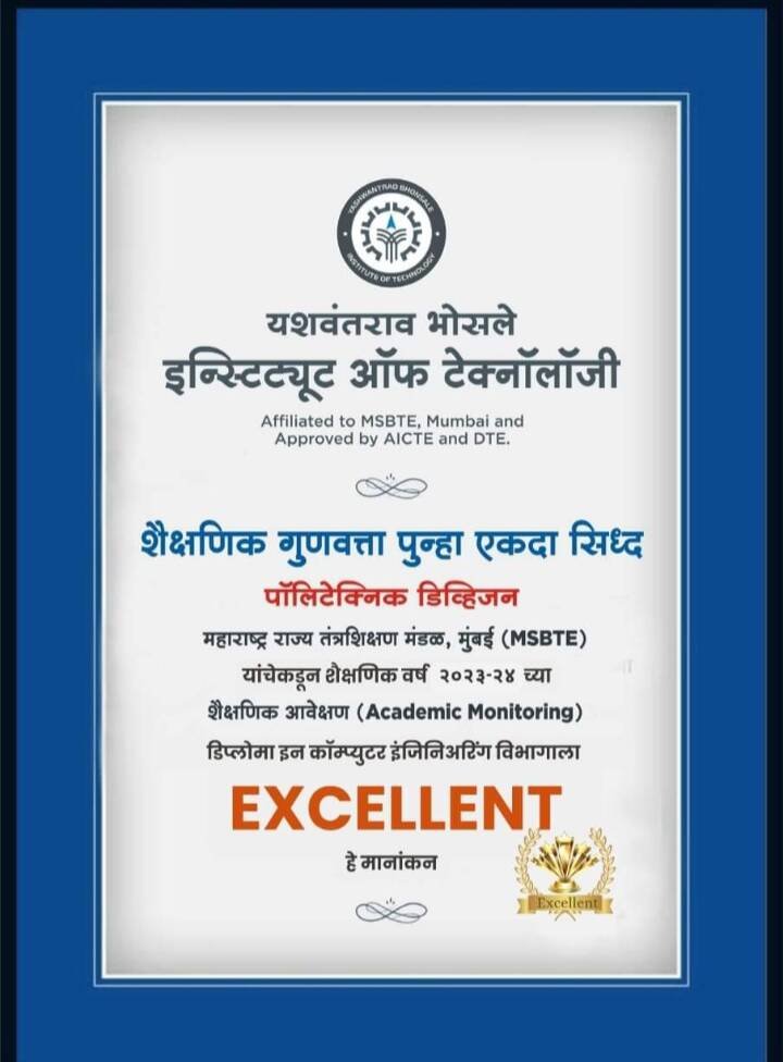 भोसले इन्स्टिट्यूट ऑफ टेक्नॉलॉजी मधील कॉम्प्युटर विभागाला ‘एक्सलंट’ मानांकन