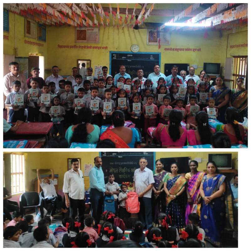 शिरशिंगे गावात राजकीय पक्षाचे नेते,देणगीदार संस्था आणि चाकरमानी यांच्या माध्यमातून गावातील शाळेतील मुलांना शालेय साहित्य वाटप